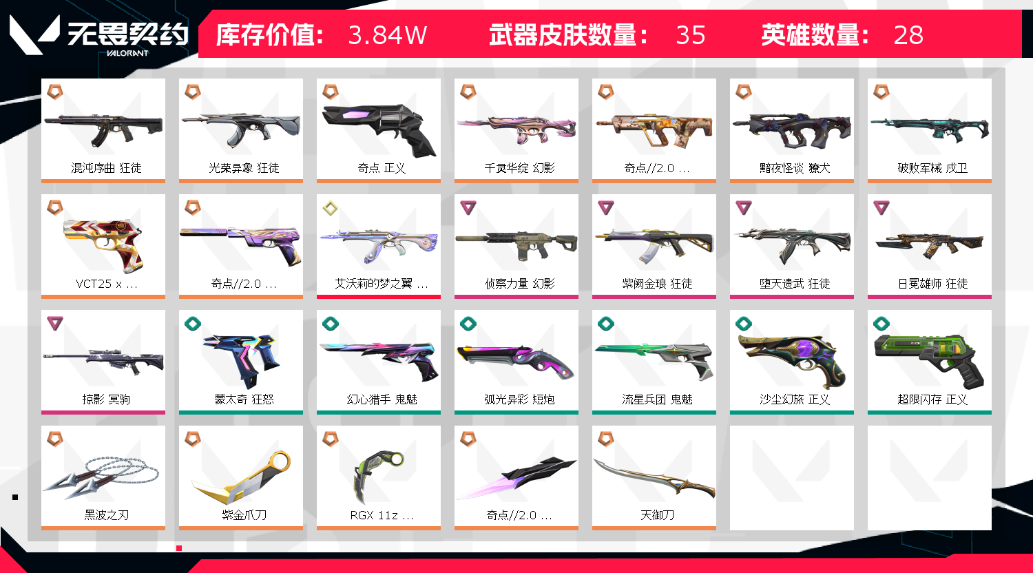 • 皮肤资产价值: 38450