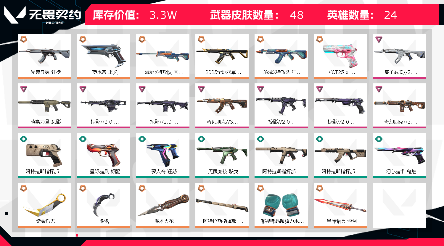 3W库存✨25冠军狂徒✨掠影2.0套装✨电工钳 紫金爪 滋滋拳套✨光荣 离子 水枪 狂徒✨塑水正义 您租赁过程中异地冻结请及时联系我们解决 请点击解除冻结,全天在线解冻 人头超过35以上就会导致炸鱼封禁,弹出炸鱼导致的禁赛拉黑⚠️如果上号正在有人玩,可能是上一租客留下的对局,不用着急退单,我们会赠送您时间游玩 ⚠️严禁挂机,如发现挂机,我们会根据违规程度对您进行拉黑处理!!!;紫金爪刀,侦察力量 幻影,光荣异象 狂徒,离子武器//2.0 狂徒,塑水宗 正义,