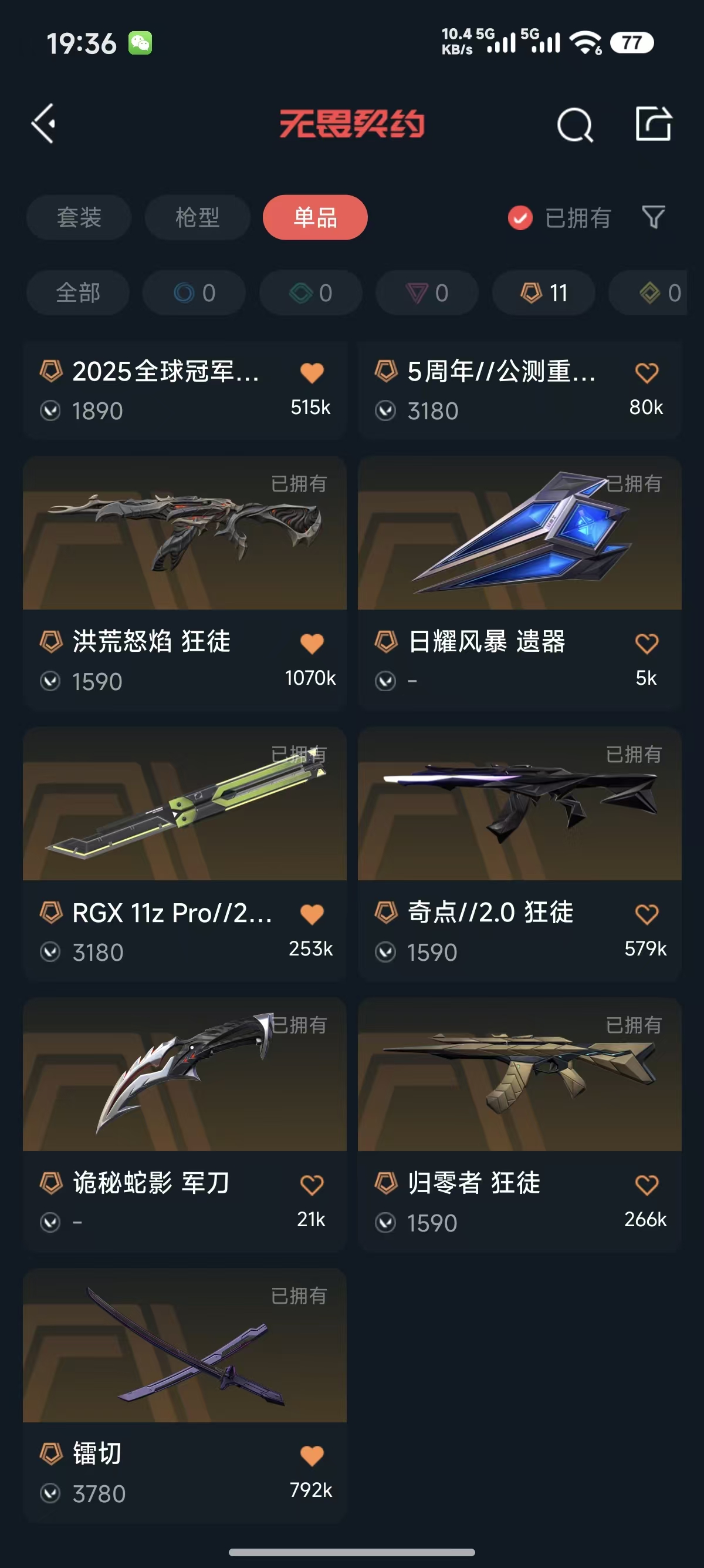 首页 > 租号大厅 > 无畏契约-wegame > wegame/wegame > 25冠军狂徒✨青龙小刀✨镭切 离子爪刀 显卡蝴蝶✨流脓 盖亚 起源 奇点狂徒✨侦察 般若幻影✨