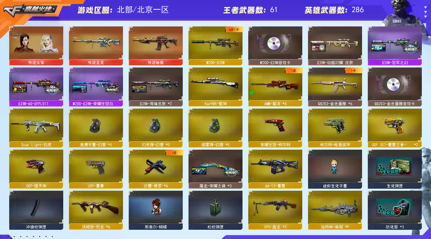 • 游戏区服:穿越火线 / 北部 / 北京一区