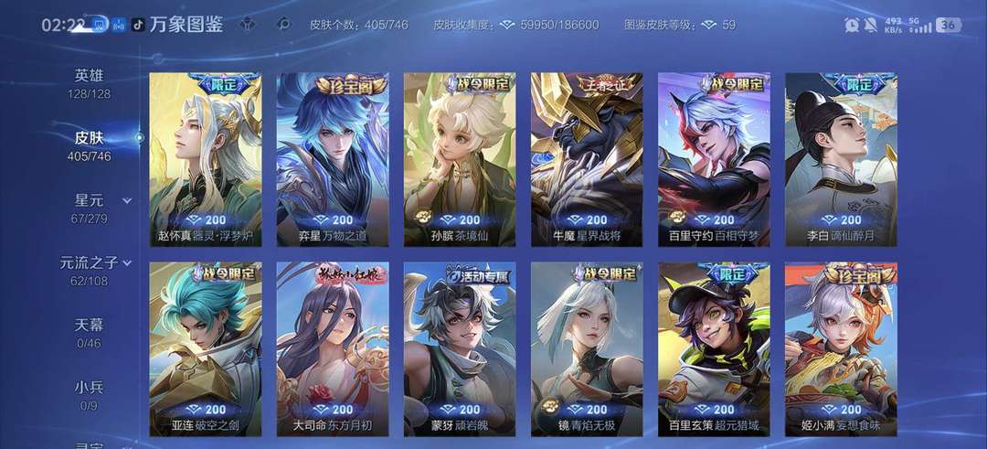 v10、12水555皮、死亡执政官、刘备星传说时之思念、小兵皮肤大耳狗甜茶、瑶无双真我赫兹、愿照·九州拓、怪盗基德、画中仙、至尊宝、凤求凰、神威、天魔缭乱