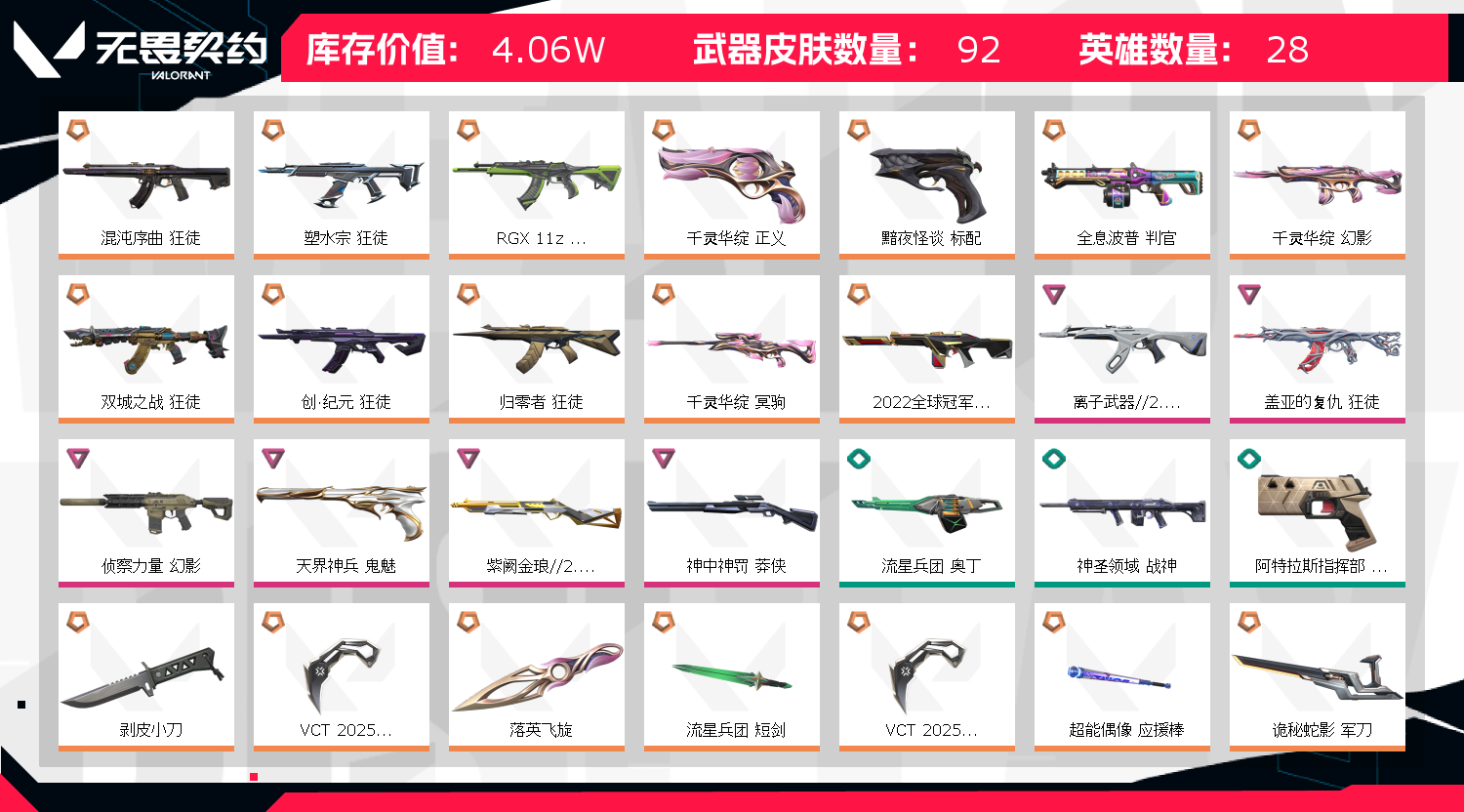 vct爪刀;剥皮小刀,VCT 2025 爪刀,盖亚的复仇 狂徒,侦察力量 幻影,RGX 11z Pro 狂徒,混沌序曲 狂徒,塑水宗 狂徒,