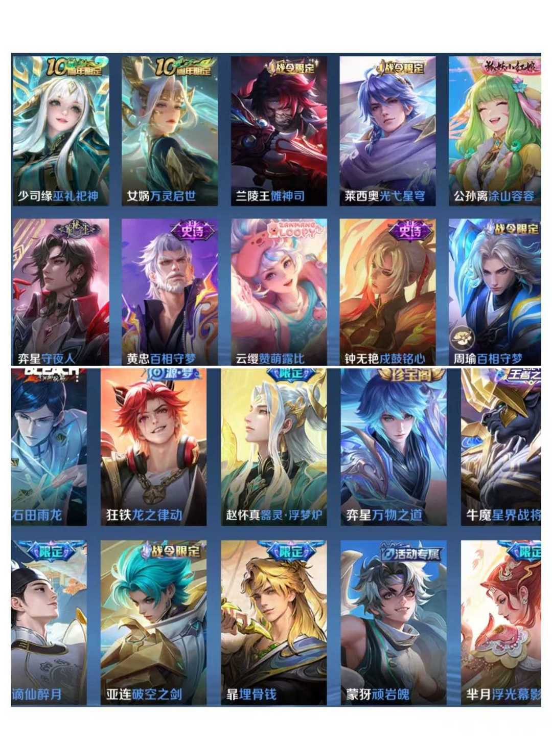 v10、524皮5水4无双、遇见神鼓、齐天大圣、白虎志、韩信荣耀典藏、72传说、愿照·九州拓、时之魔女、瑶无双、青丘、九尾、神器明辉仪