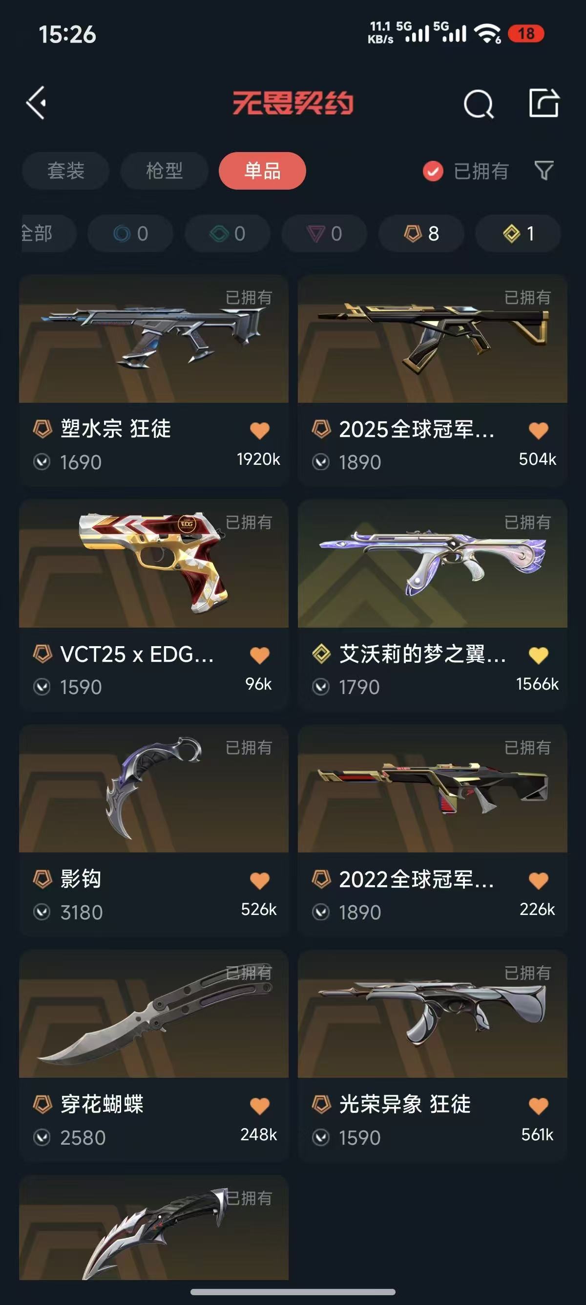 25冠军狂徒✨22冠军幻影✨影钩✨穿花蝴蝶✨艾沃莉 塑水 光荣 盖亚 起源狂徒✨VCT标配✨