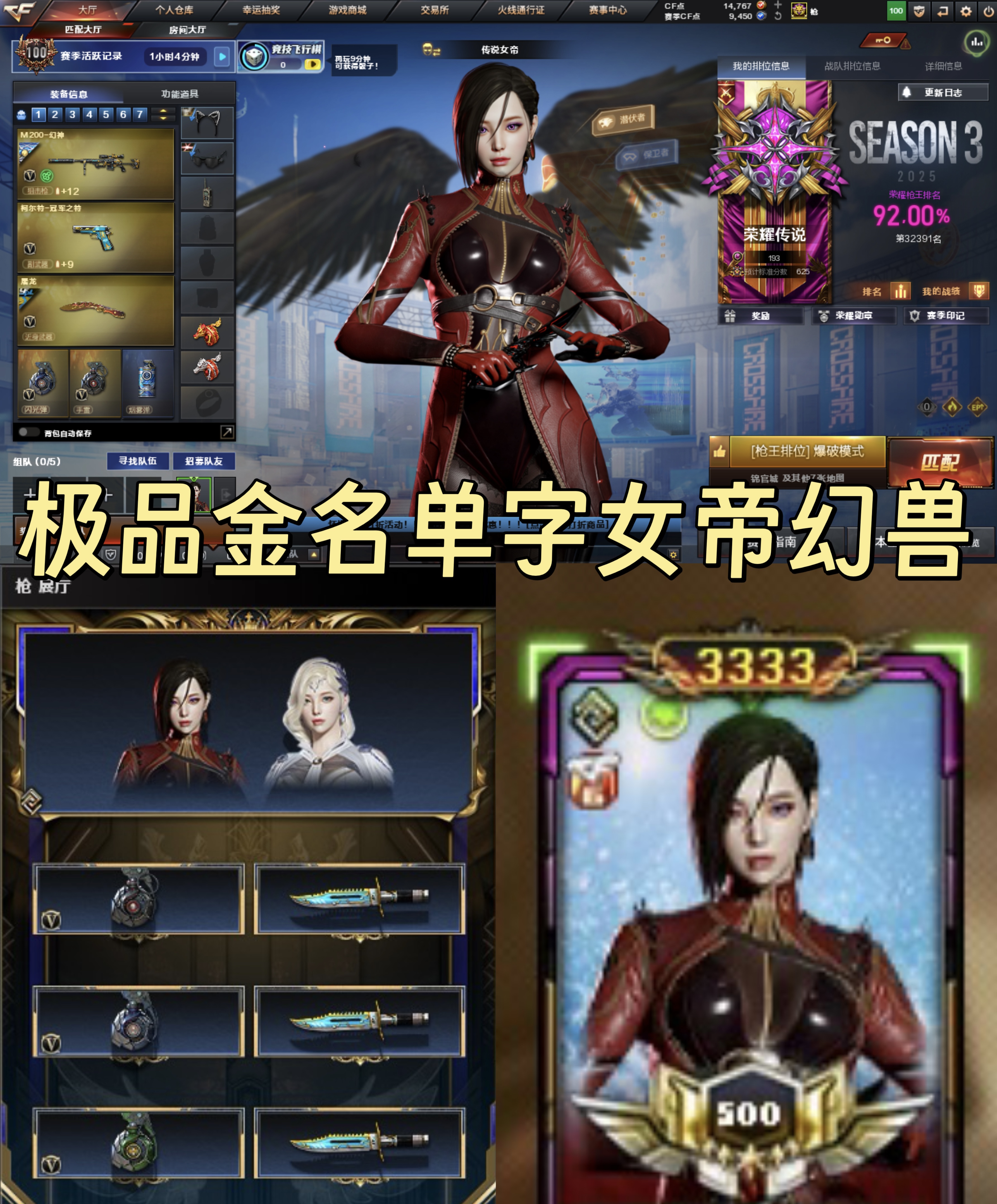 首页 > 租号大厅 > 穿越火线 > 网通区/山西一区 > 极品单字id枪✨女帝幻兽序列号3333⭐幻神ep10皮带卡裁决流光巅峰三件套雷神15皮✨天花板副武器