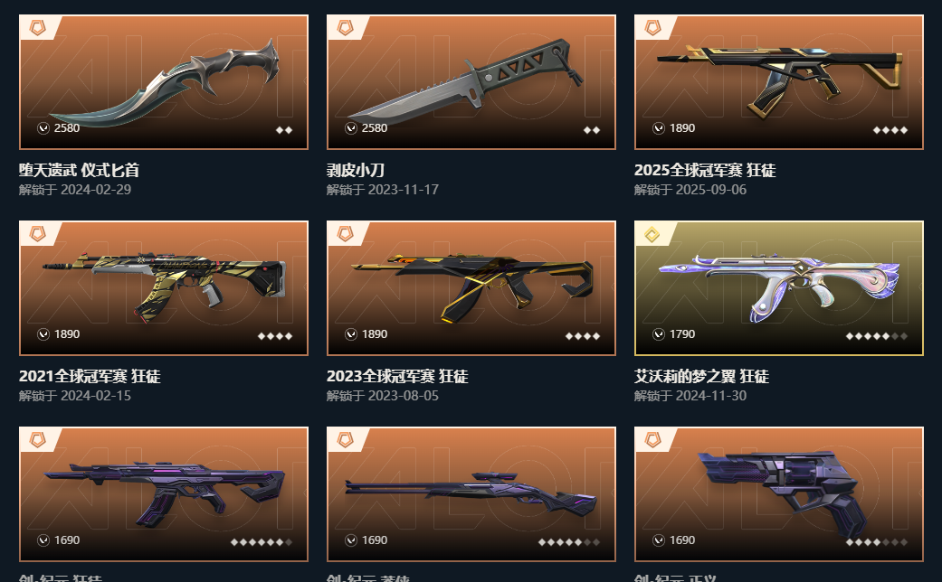 212325冠军套离火刃掠影2.0套创纪元套恶魔套奇点2.0套弃王套归零套猫猫显卡流脓塑水双城21把;
