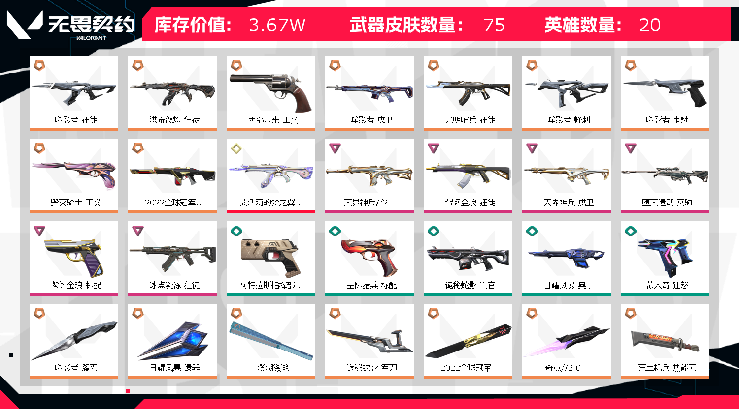 • 皮肤资产价值: 36660