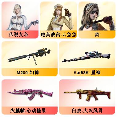 晨晨70VM200幻神+黄忠/98K星神璀璨/传说女帝云悠悠晴雅雨棠/传说辉光6音效卡/雷神宠儿