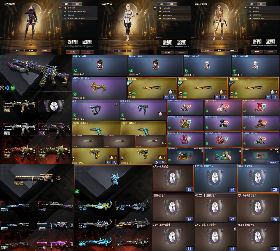 毒蝰女帝影煞幽瞳玄武③炽芒全皮八面音效龙宝②冠特冠刃④蝴蝶③皮炼狱音效毒蜂清道夫♥裁决音效卡幻神星神;柯尔特-冠军之特,炽芒蝶刃,Knife-冠军之刃,沙漠玫瑰,传说影煞,传说女帝,隼,