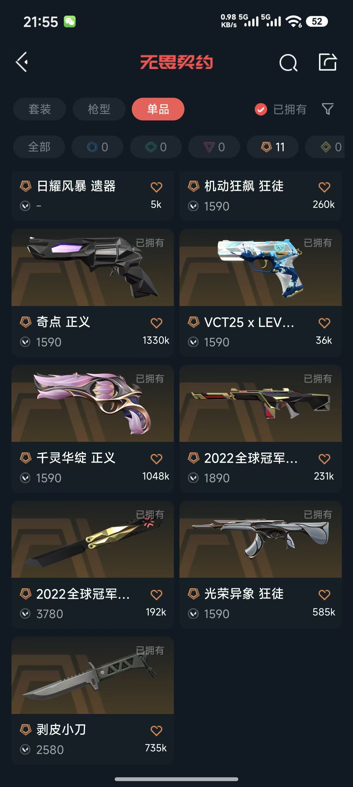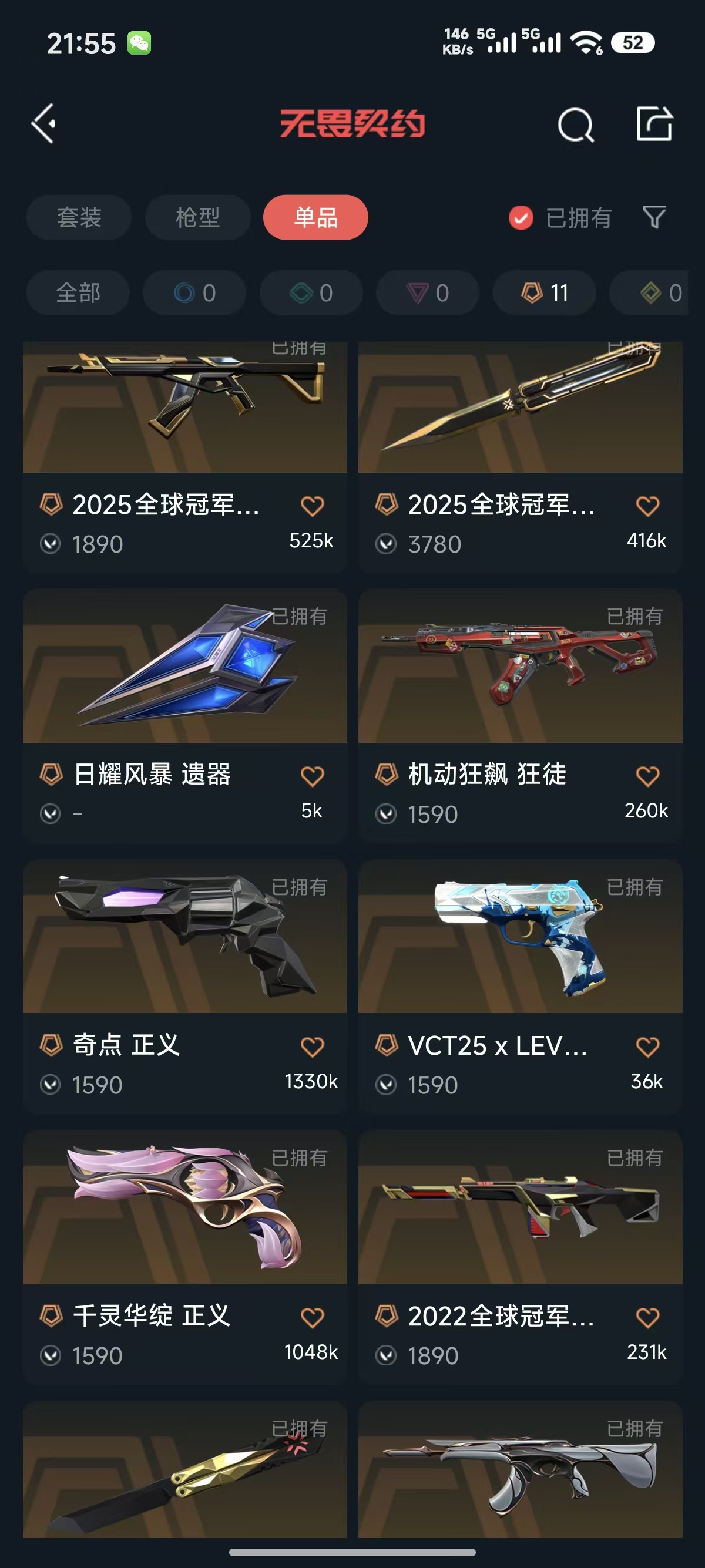 25冠军套装✨22冠军套装✨剥皮小刀✨盖亚 紫金 光荣 摩托狂徒✨侦察幻影✨奇点 千灵 正义✨