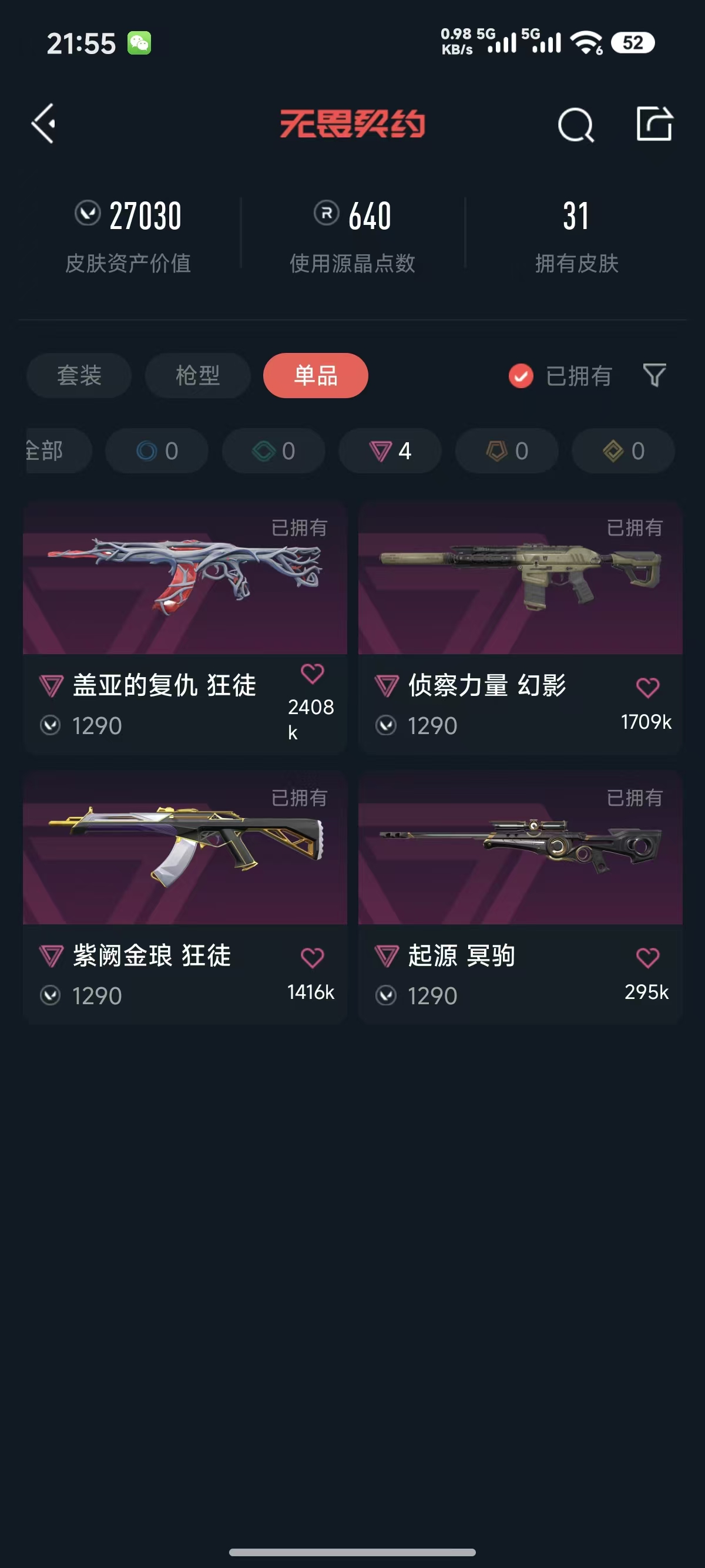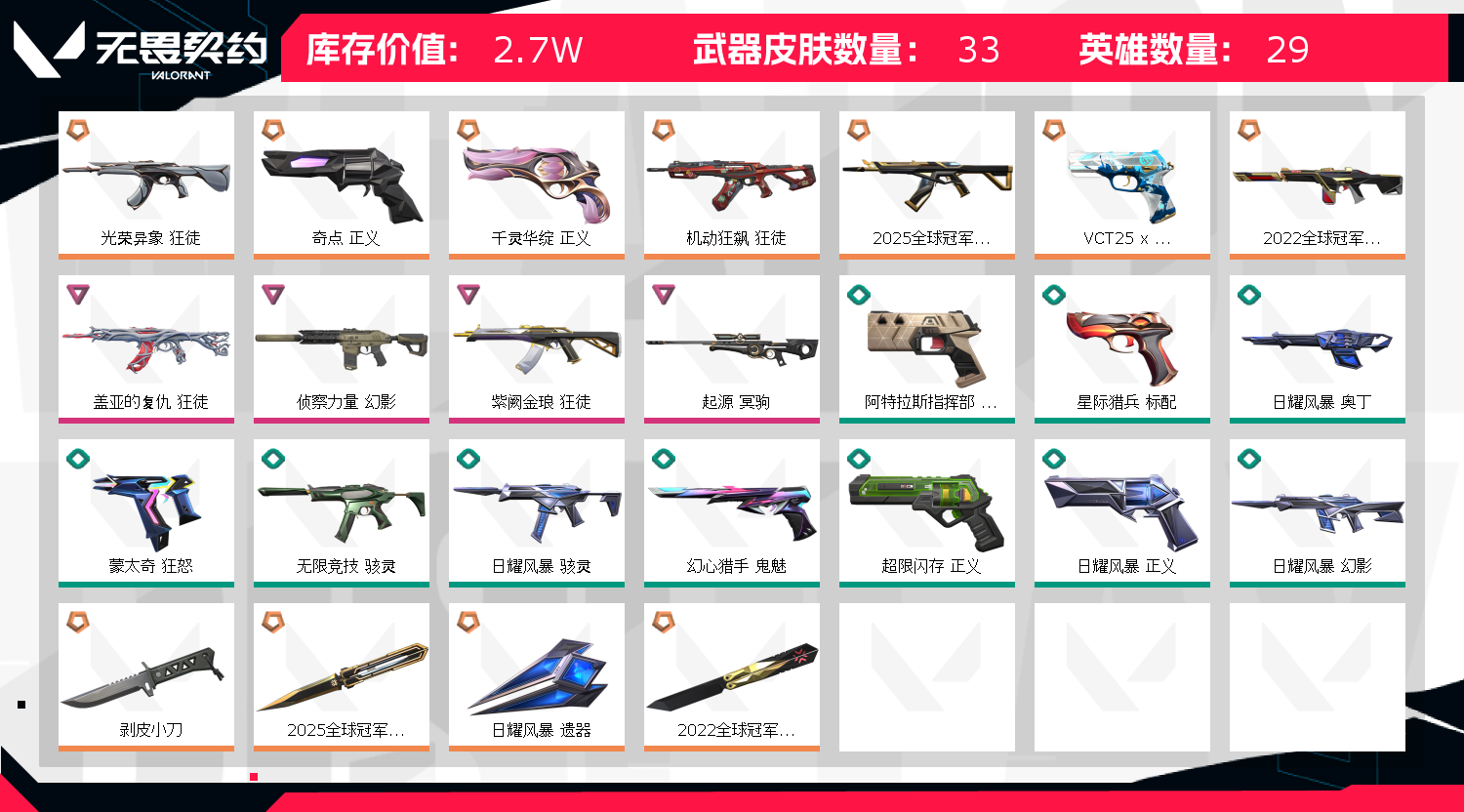 • 皮肤资产价值: 27030
