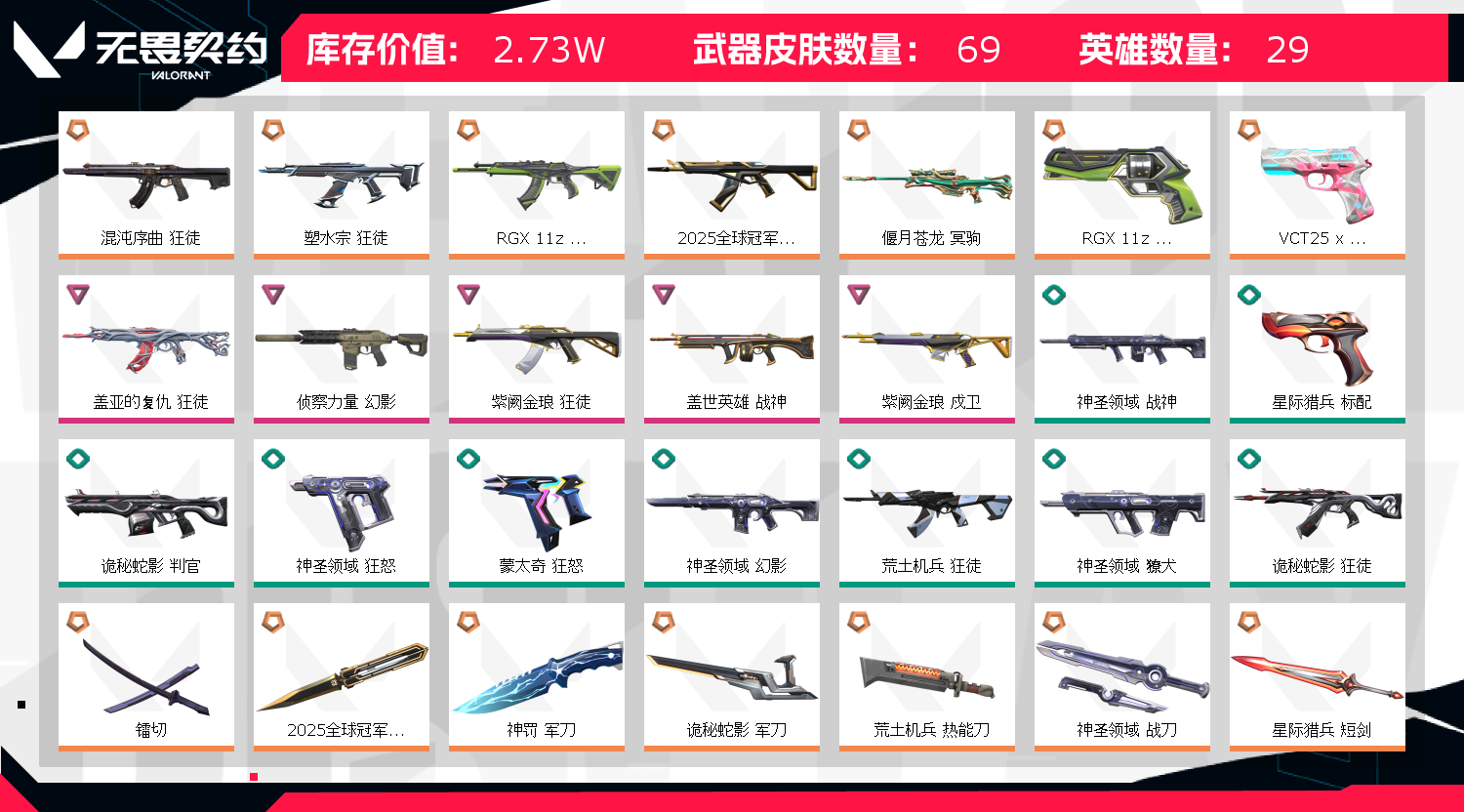 • 武器皮肤数量: 69