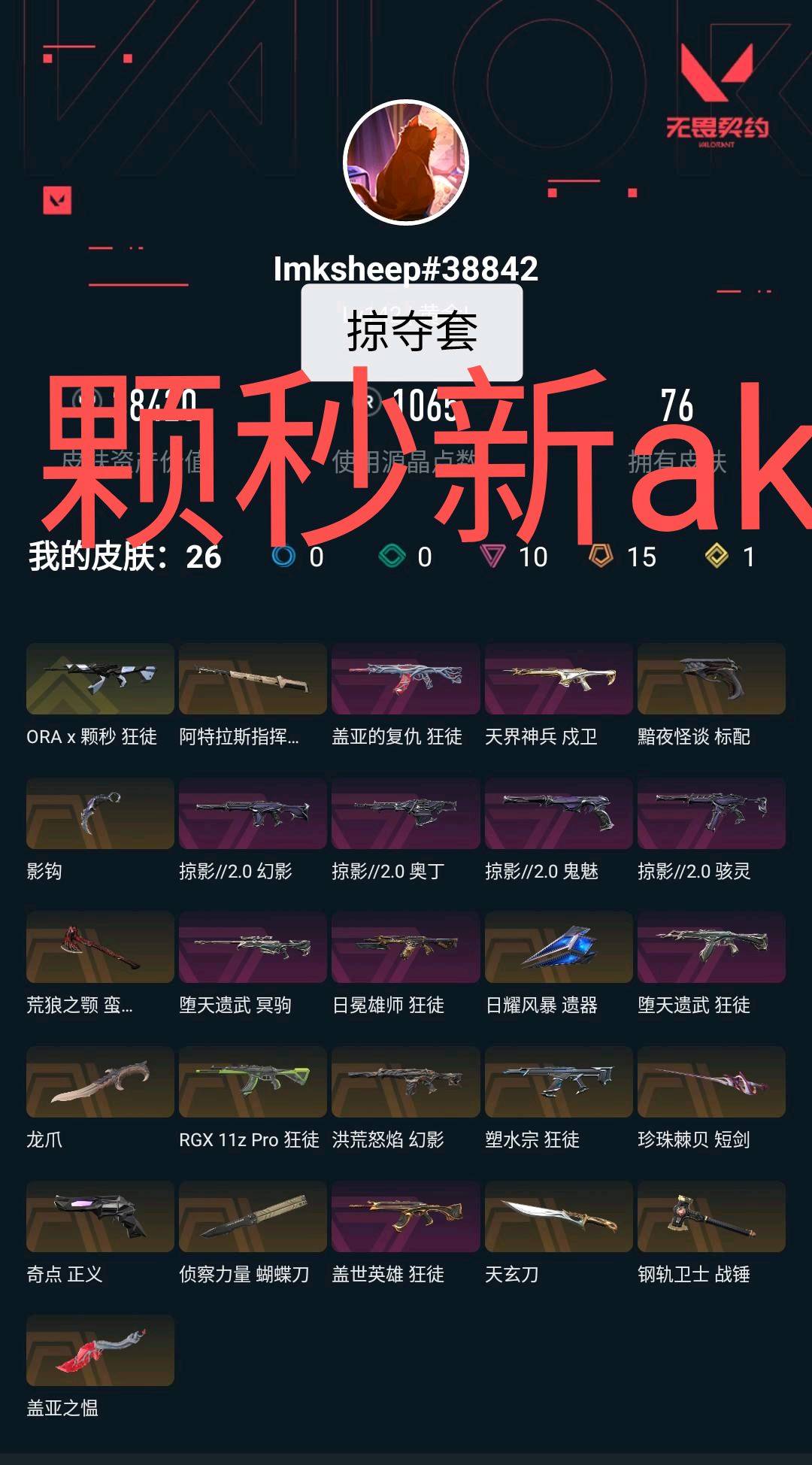 冻结秒解⚡️4w库颗秒新狂徒⚡️掠夺2.0套⚡️雄狮盖亚显卡塑水ak天界堕天流脓奇点正义 天玄刀❤️