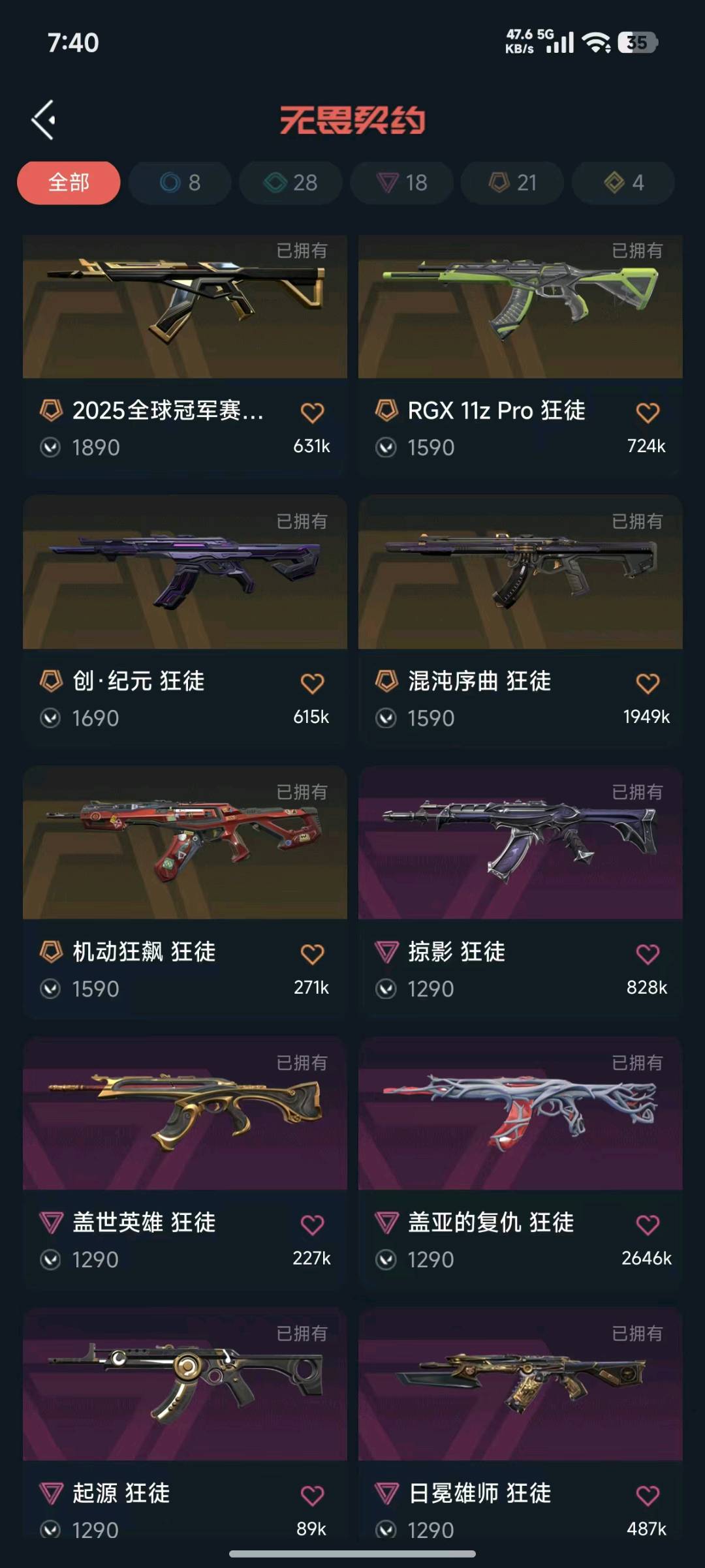 允许 英雄28 武器皮肤数量157 使用R点押金不退;西部未来 奥丁,奇点 战神,紫金爪刀,盖亚的复仇 狂徒,掠影 戍卫,掠影 狂徒,RGX 11z Pro 狂徒,
