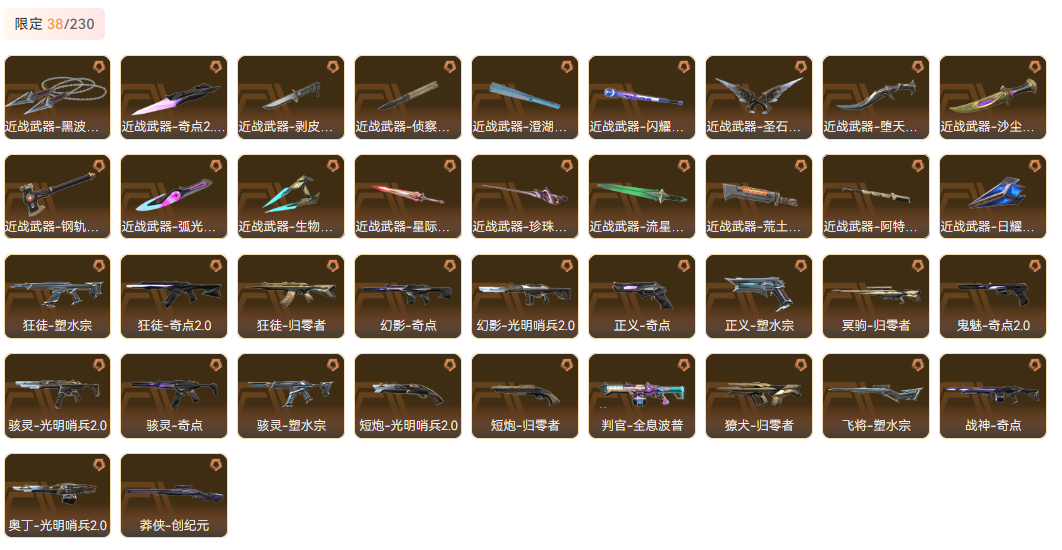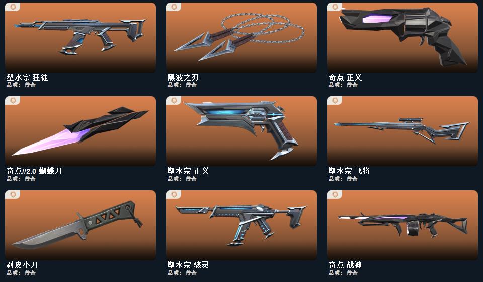 wegame无畏契约★ 光明哨兵2.0套装、塑水宗套装、归零者套装、奇点2.0套装、堕天遗武套装,近战武器-弧光异彩军刀、近战武器-侦察力量蝴蝶刀、近战武器-澄湖潋滟、近战武器-生物收割器、近战武器-沙尘幻旅匕首、近战武器-剥皮小刀、近战武器-圣石匕首、近战武器-黑波之刃、近战武器-钢轨卫士战锤,鬼魅-信手涂鸦、鬼魅-天界神兵、鬼魅-胡桃狂想、鬼魅-光导纤维、鬼魅-奇点2.0、鬼魅-瑰梦艺语、鬼魅-甜蜜战术