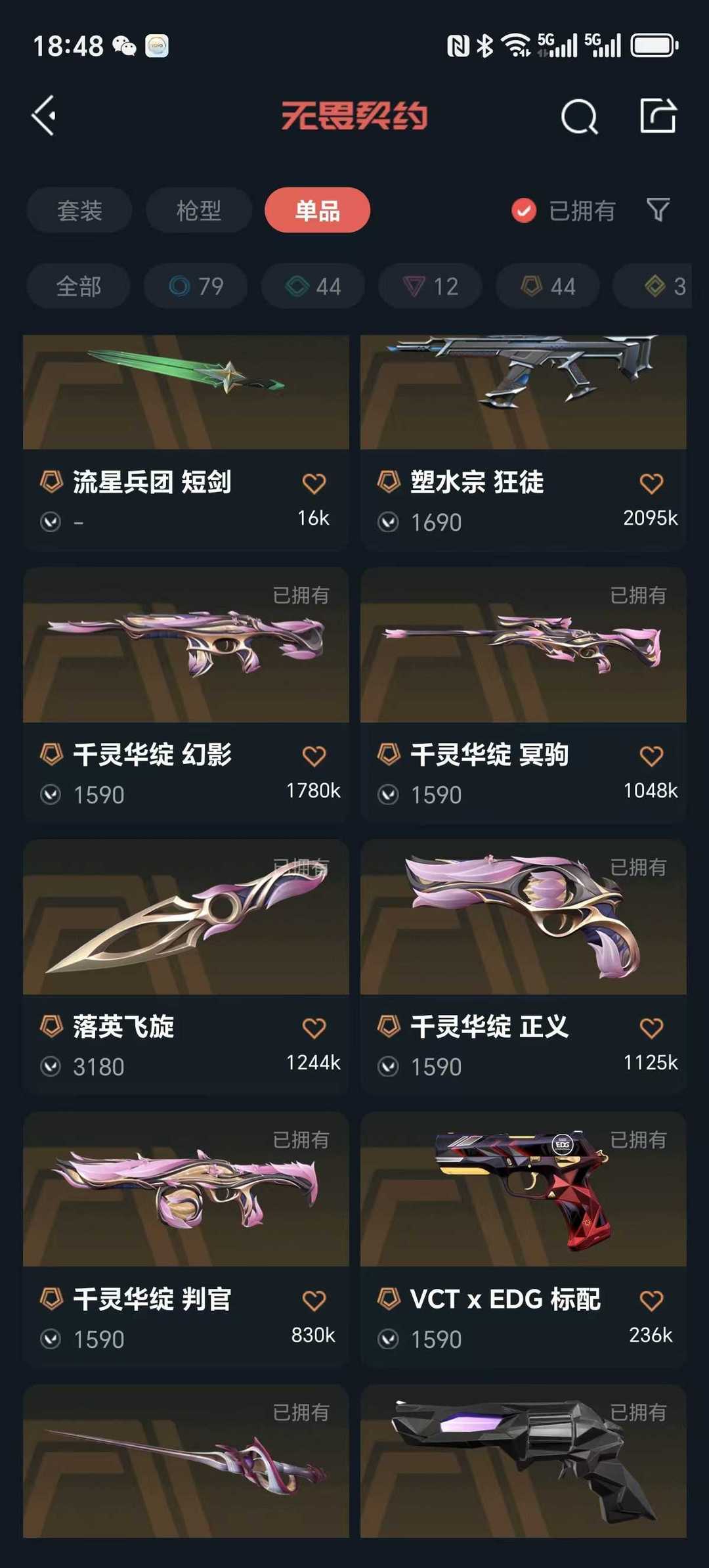 炸鱼拉黑❤9万库存 ❤vct爪刀❤莲花 千灵华绽❤奇点❤苍龙❤暗夜怪谈 古神 塑水宗