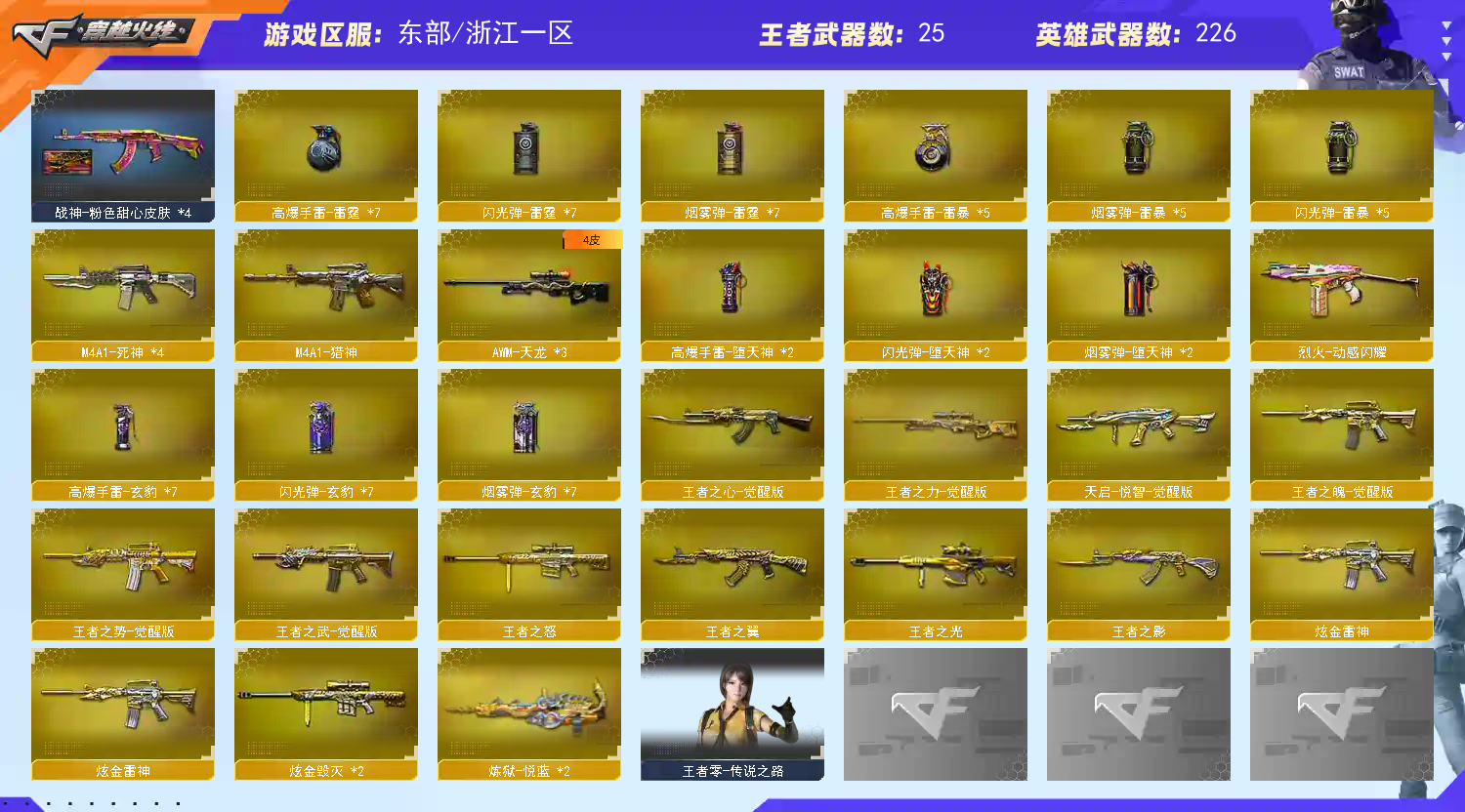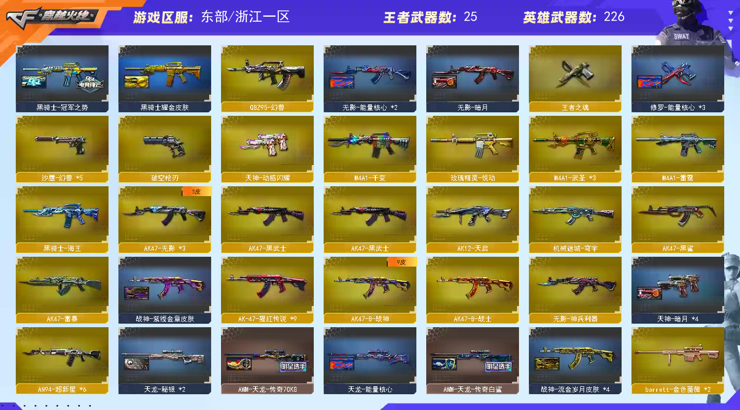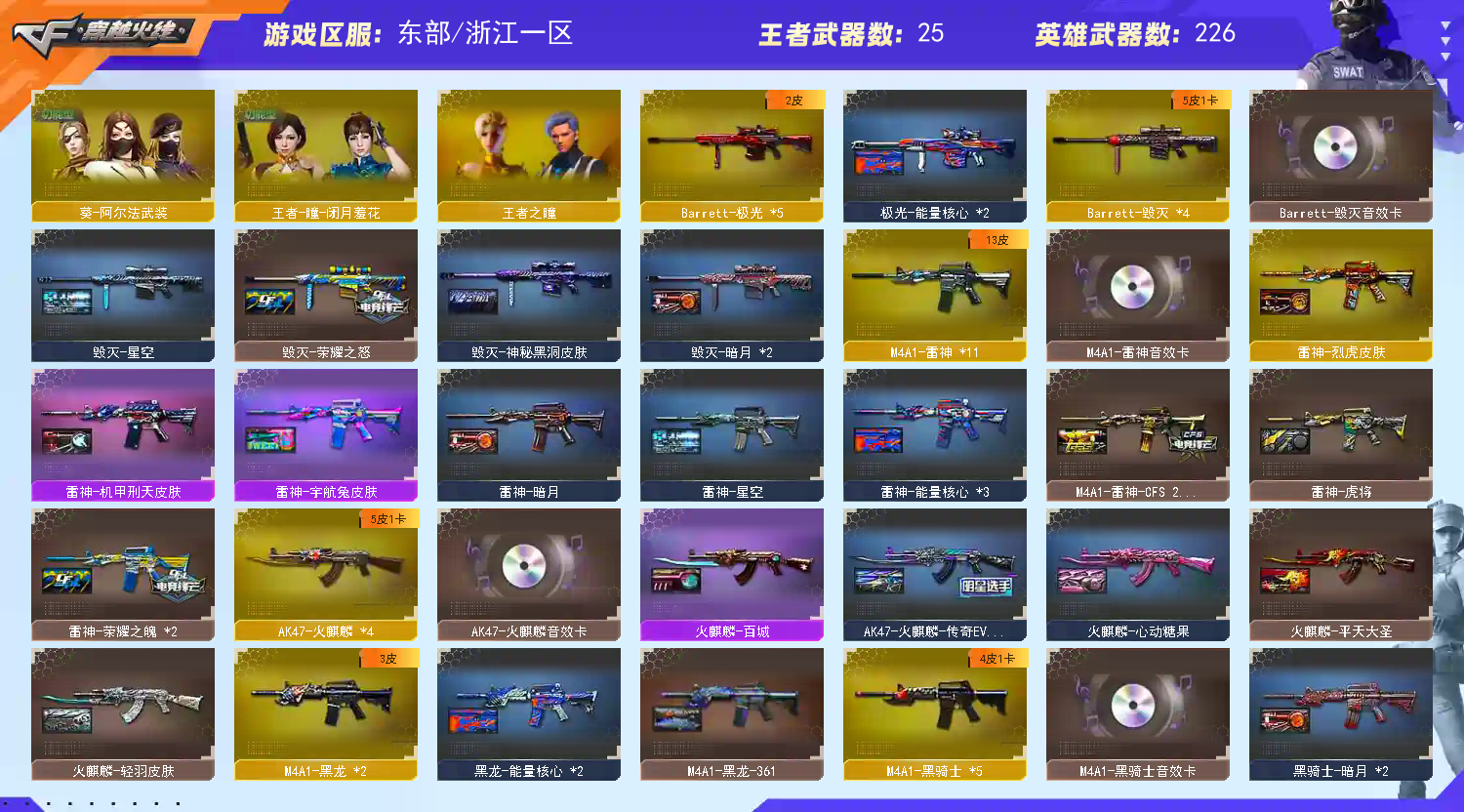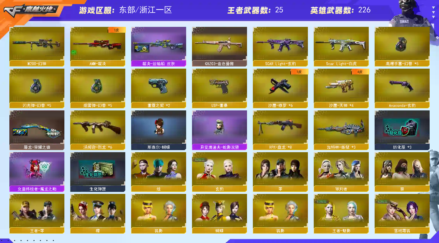 百v天花板✅QBZ95幻兽全套✅m200幻神✅cop雷霆x2✅usp雷暴✅6烈蝴蝶+蛇影双骄6盘炼狱