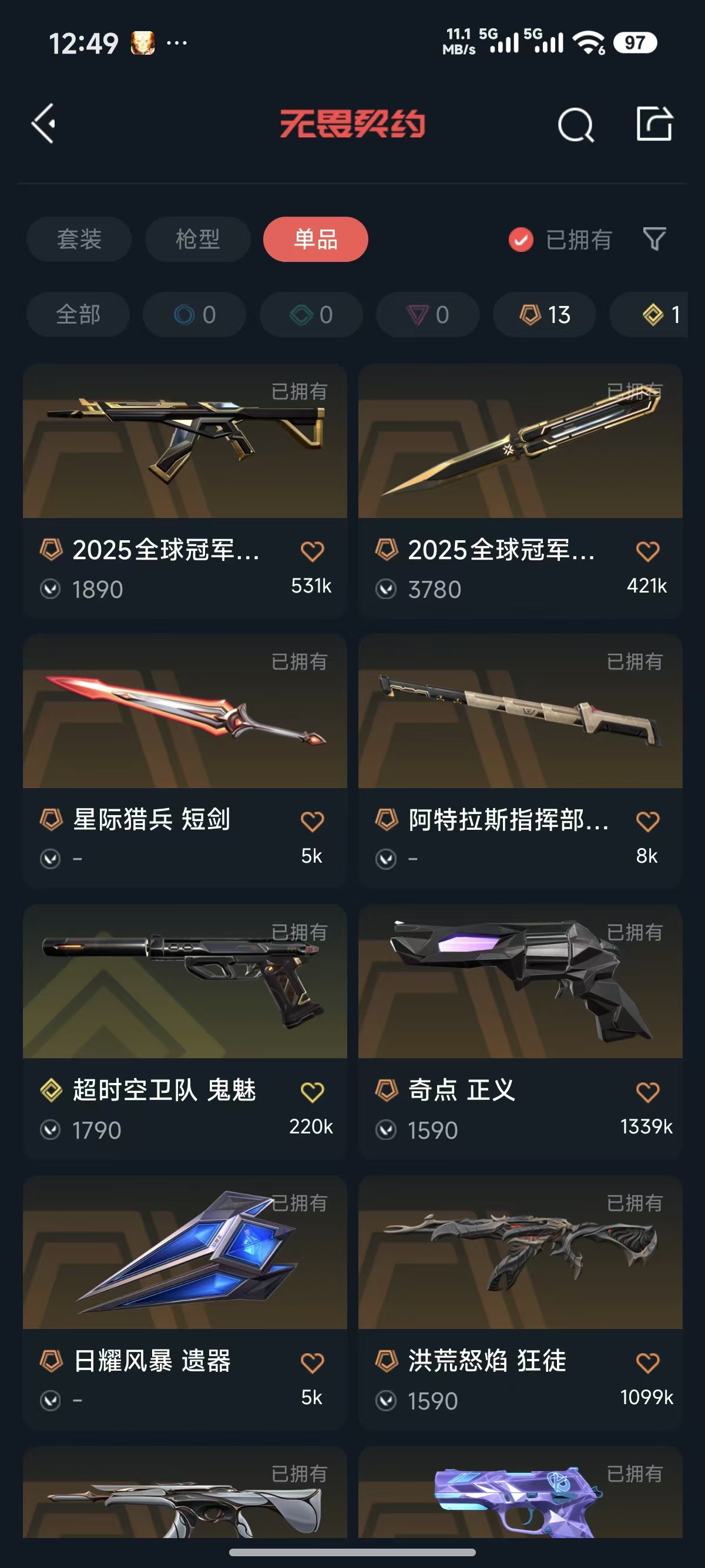 • 传奇数量: 13