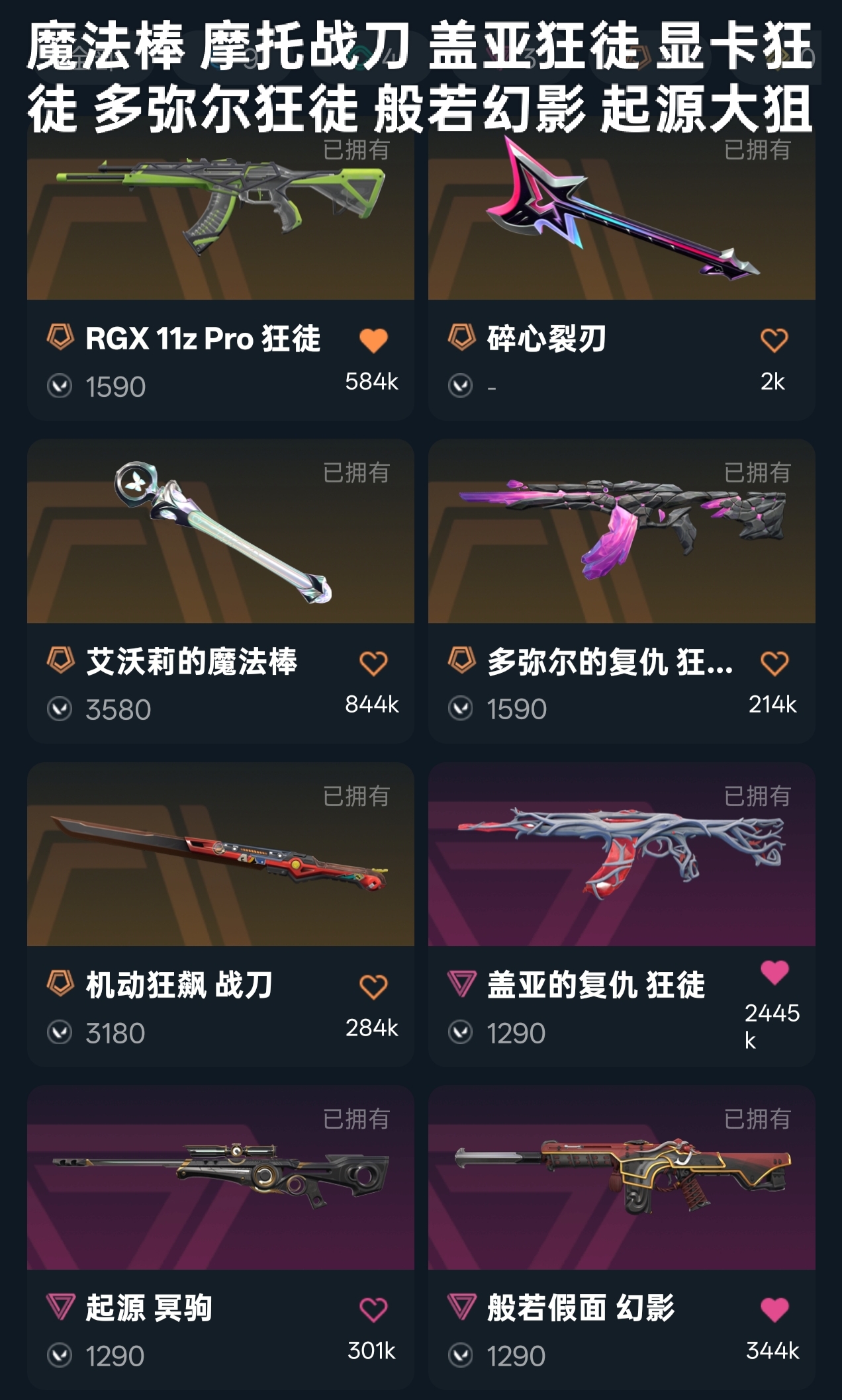 超绝小库💞女瓦最爱💞魔法棒 摩托战刀 💞盖亚狂徒 显卡狂徒 多弥尔狂徒💞般若幻影 起源大狙