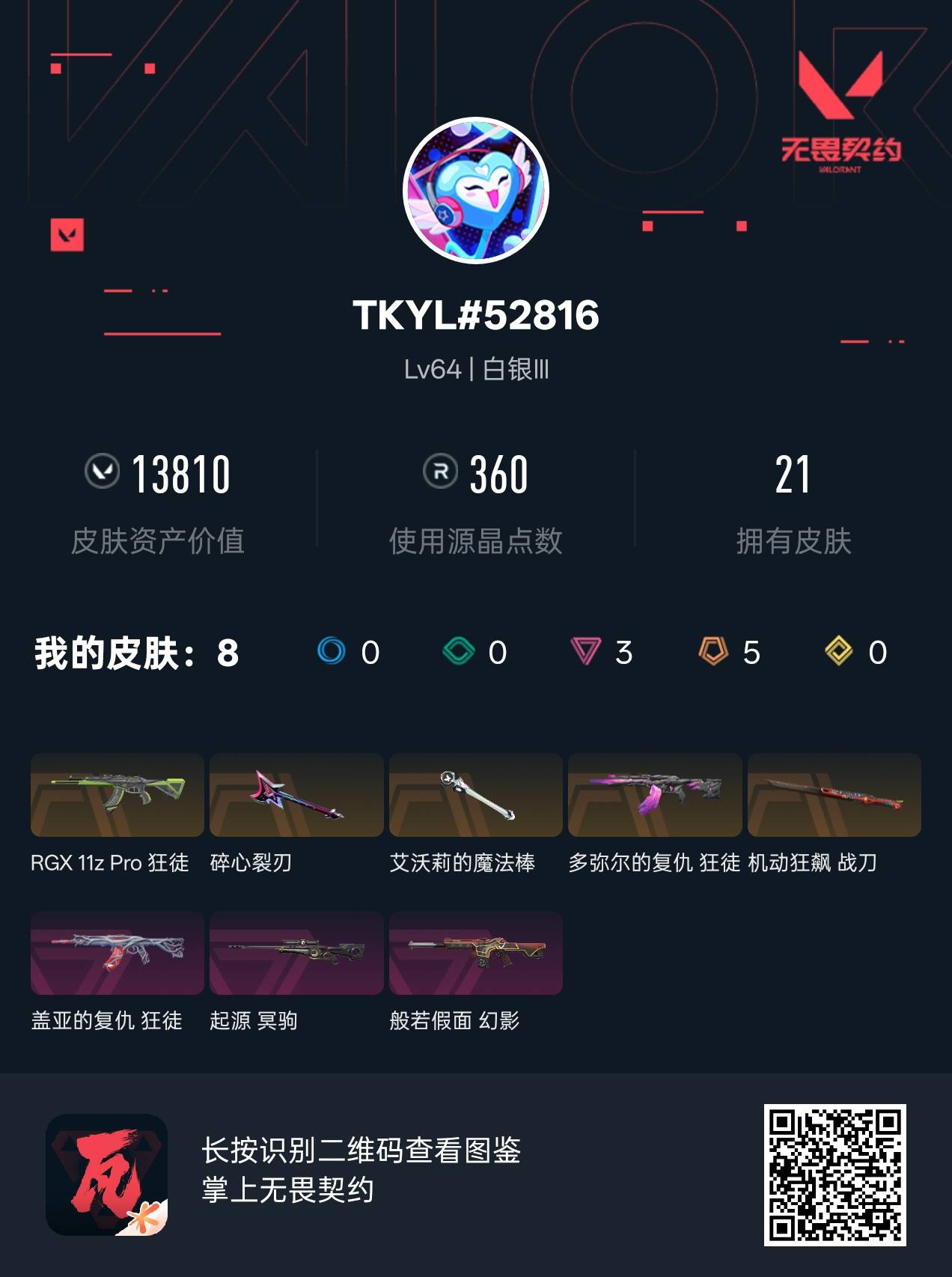 • 游戏区服:无畏契约-wegame / wegame / wegame