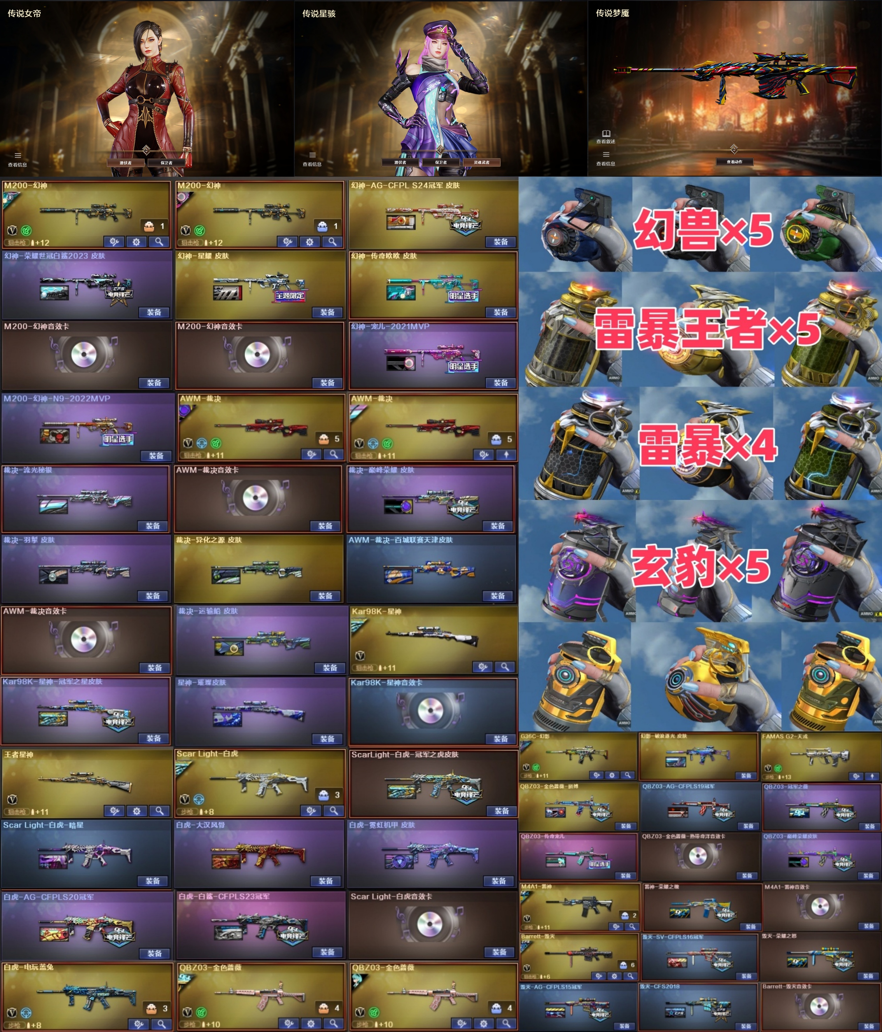 【北部】传说女帝+星骇+幻兽×5⭐幻神欧欧6皮音⭐裁决套星神套⭐usp雷暴王者冥王白虎白鲨幻影