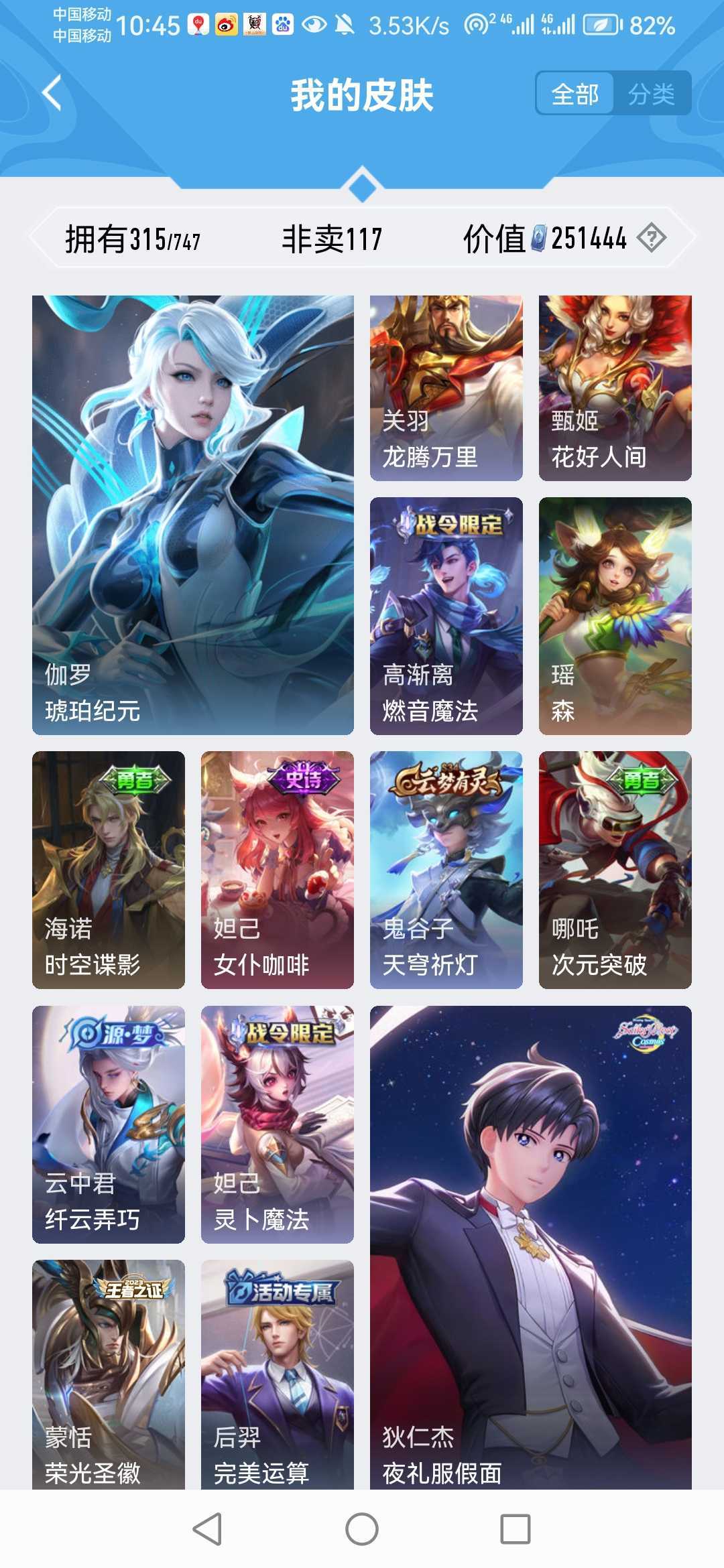 【非云直上】537满皮满典藏12星元◎鲁班新皮◎虞姬星元◎天使星元◎白金战神◎妲己绝版星元