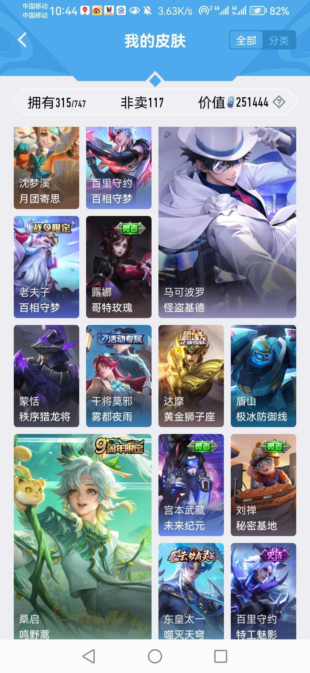 V10、550皮14水、吕布典藏-千魇归渊、云缨-神骥·越千峰、怪盗基德、伽罗星传说红枫、瑶典藏拾光映像、冥王哈迪斯、、龙年限定、齐天大圣
