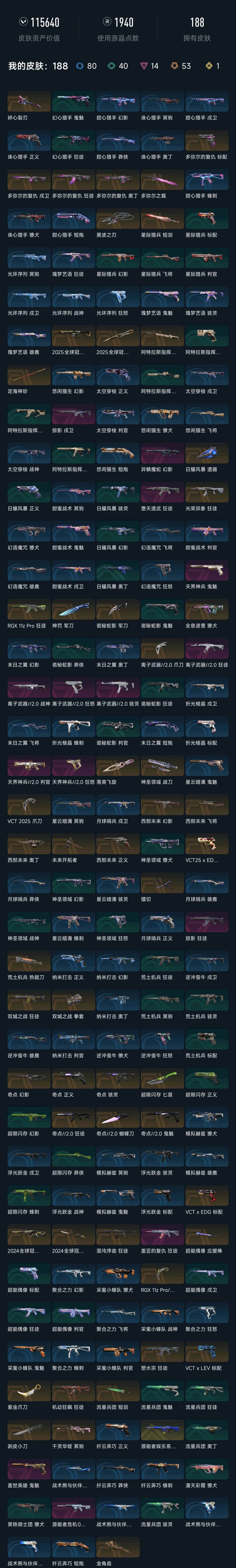• 武器皮肤数量: 188