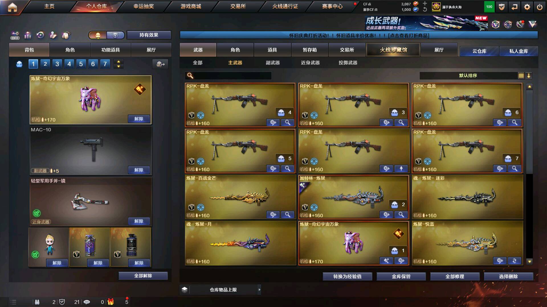 生化满配!炼狱泡泡象*2,蝴蝶刀,4防隼,6盘7烈双炼狱,幻神,柯尔特百战金芒
