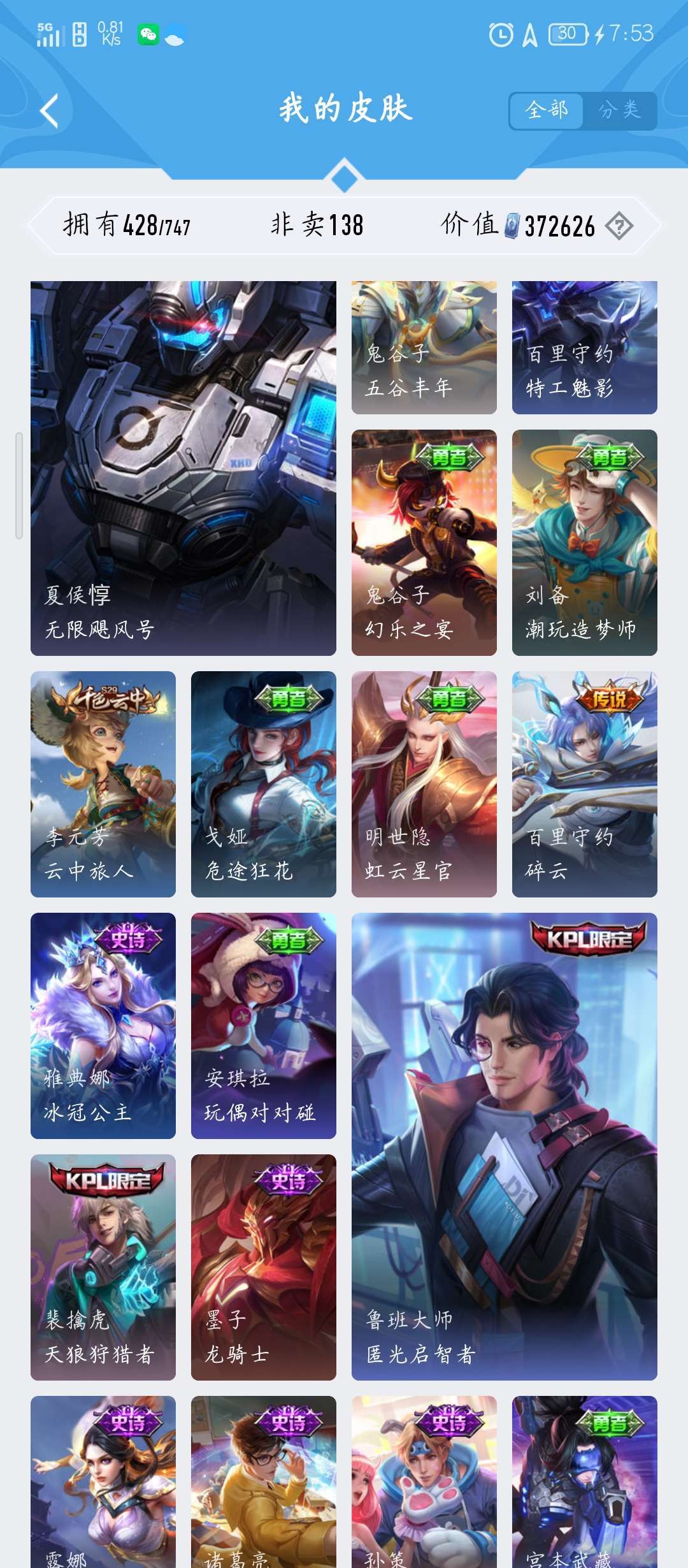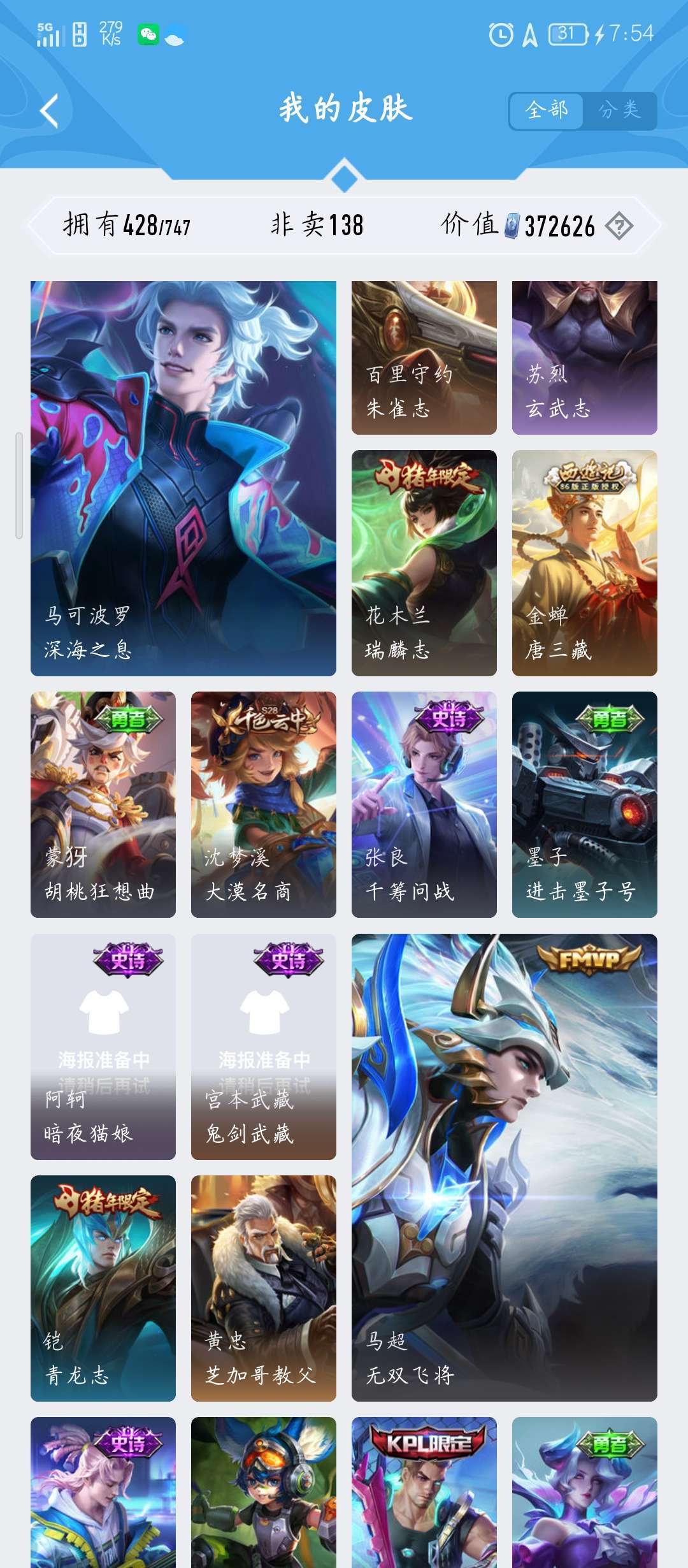 【非沄直接上号】极品V10★三历史国标★430皮★六典藏★诸葛亮新典藏★虎年五限定★鸣剑戈影★活力突击️★多限定