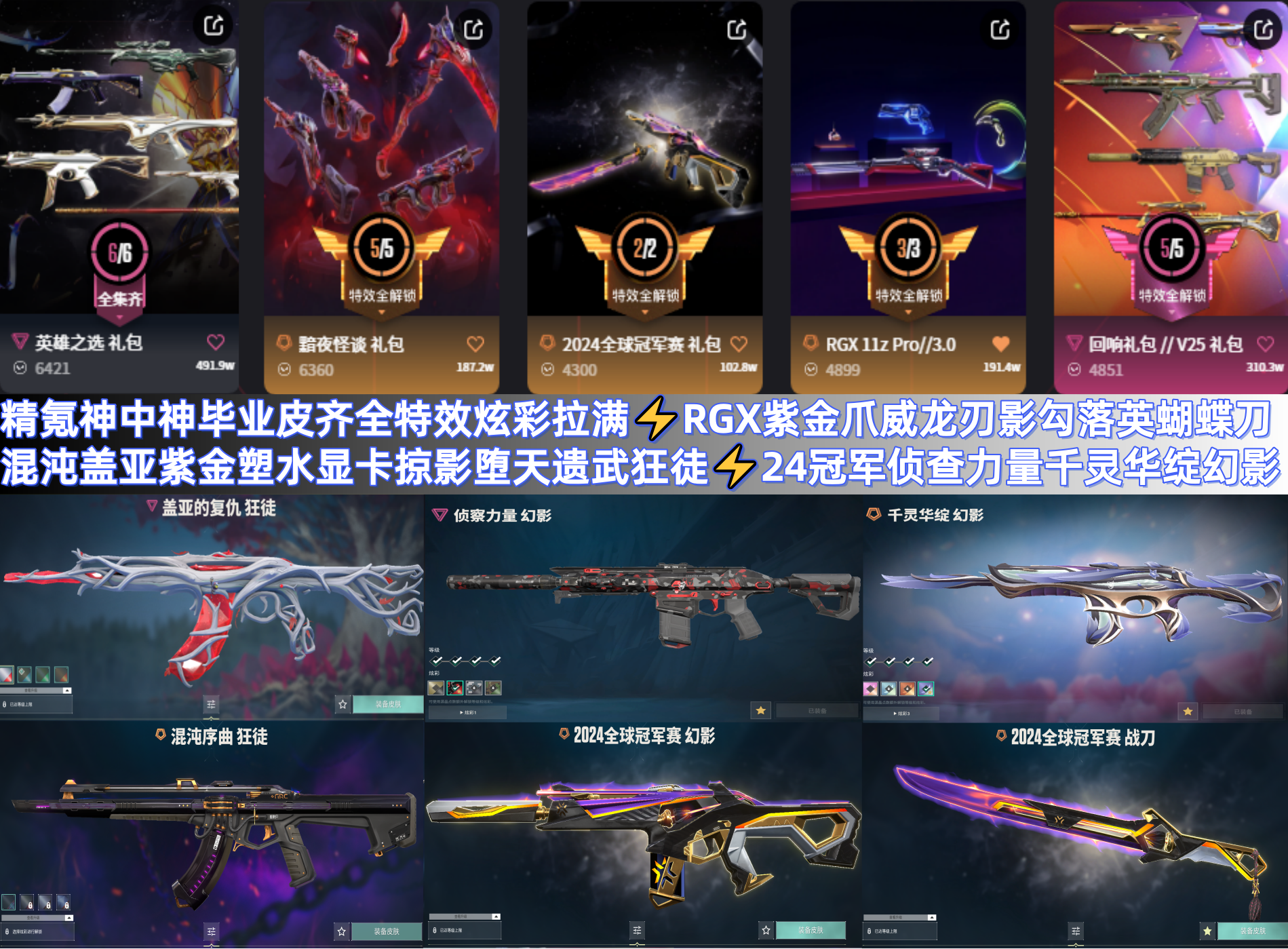 精氪毕业皮齐全特效炫彩拉满⚡显卡紫金爪威龙刃影勾落英蝴蝶刀⚡混沌盖亚紫金塑水显卡狂徒24侦查莲花幻影