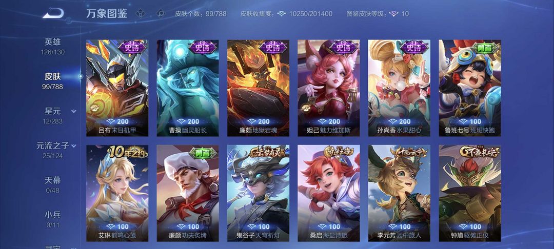 VIP10。385皮肤,七水,四星元,双王者之证!武则天神域,李白荣耀典藏,全息碎影,全符文,各种限定,各种机甲,皮肤都有,绝对满足各位