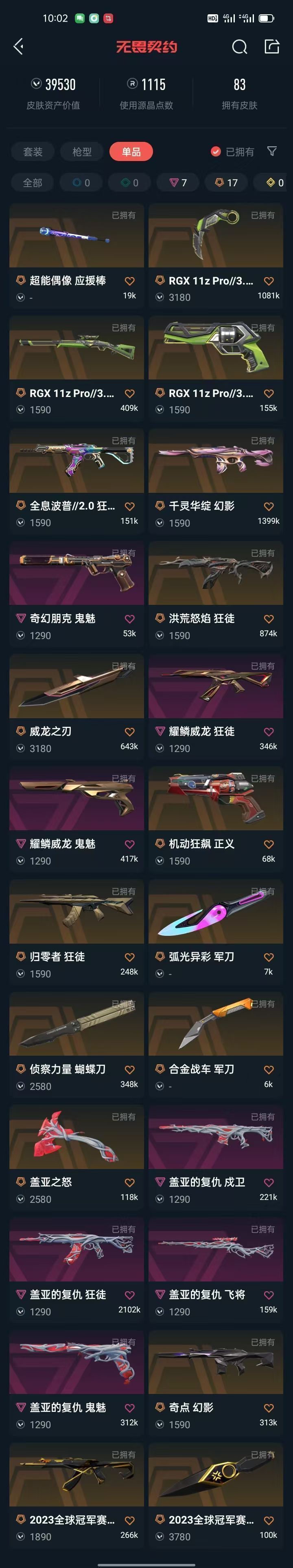 首页 > 租号大厅 > 无畏契约-wegame > wegame/wegame > 可排⚡23冠军套-盖亚套-耀麟套-RGX套⚡应援棒弧光军刀侦察蝴蝶刀⚡洪荒AK千灵幻影全息波普AK