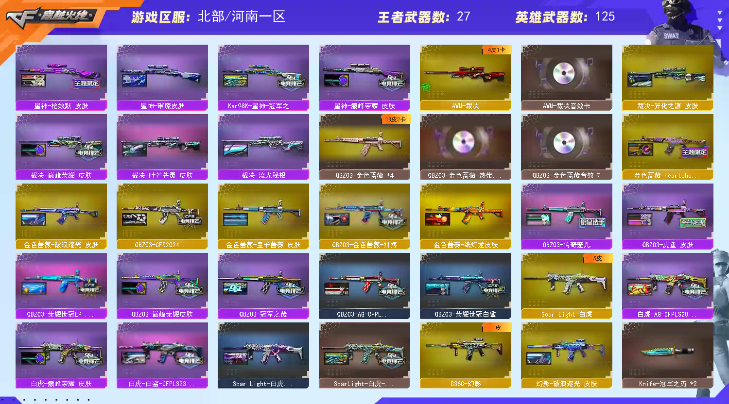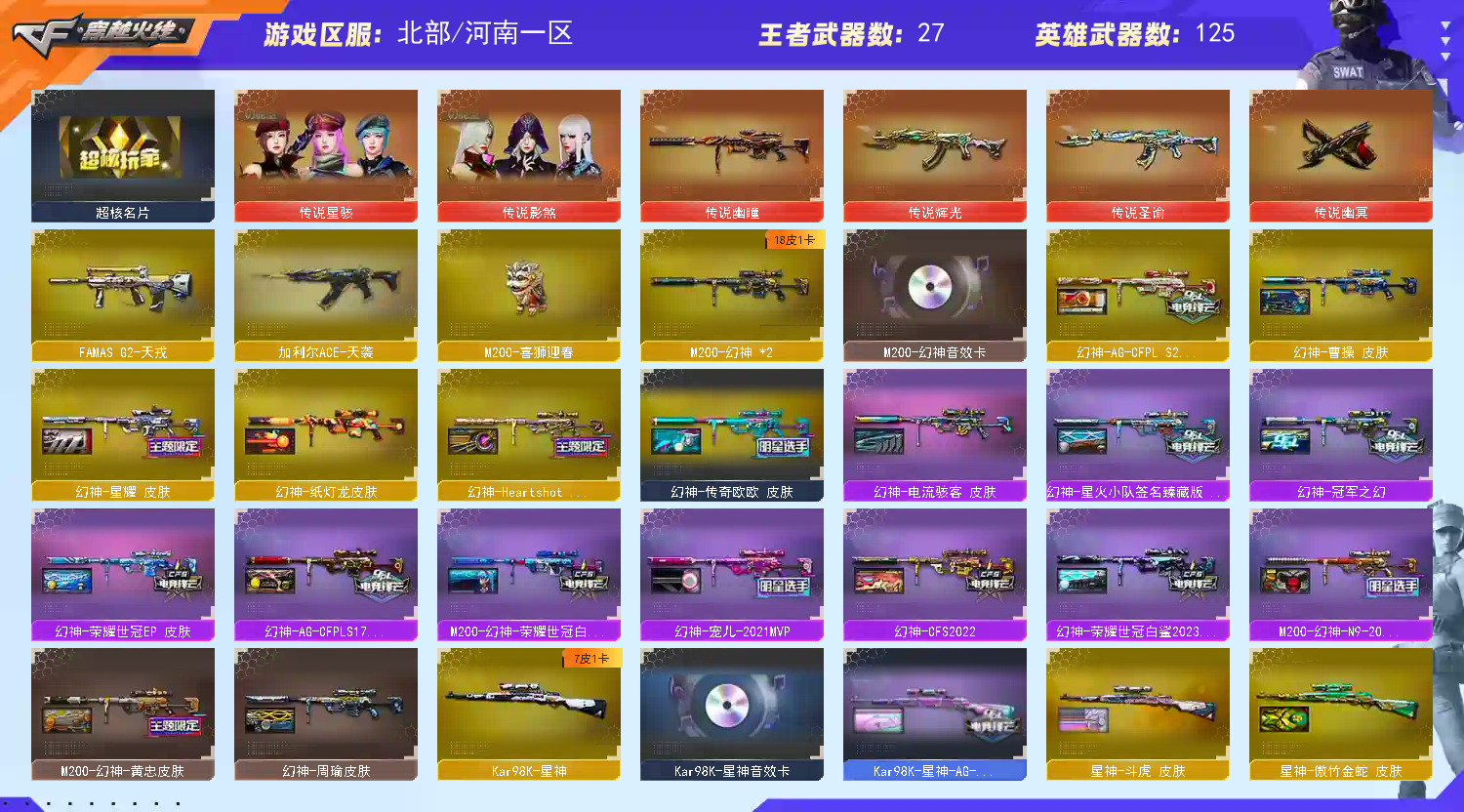 首页 > 租号大厅 > 穿越火线 > 网通区/河南一区 > (全新加利尔)6传说✨辉光圣谕幽瞳幽冥✨幻神19皮肤✨三把蝴蝶刀星神+6皮+卡裁决4皮卡生化全套