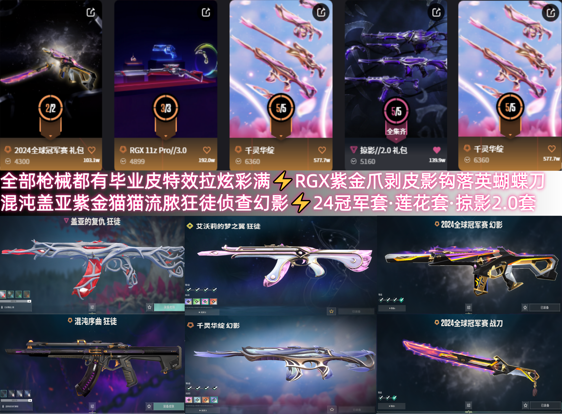 所有武器都有毕业皮⚡24冠军掠影2.0莲花显卡3.0套装剥皮紫金蝴蝶刀⚡混沌盖亚猫猫紫金狂徒侦查幻影