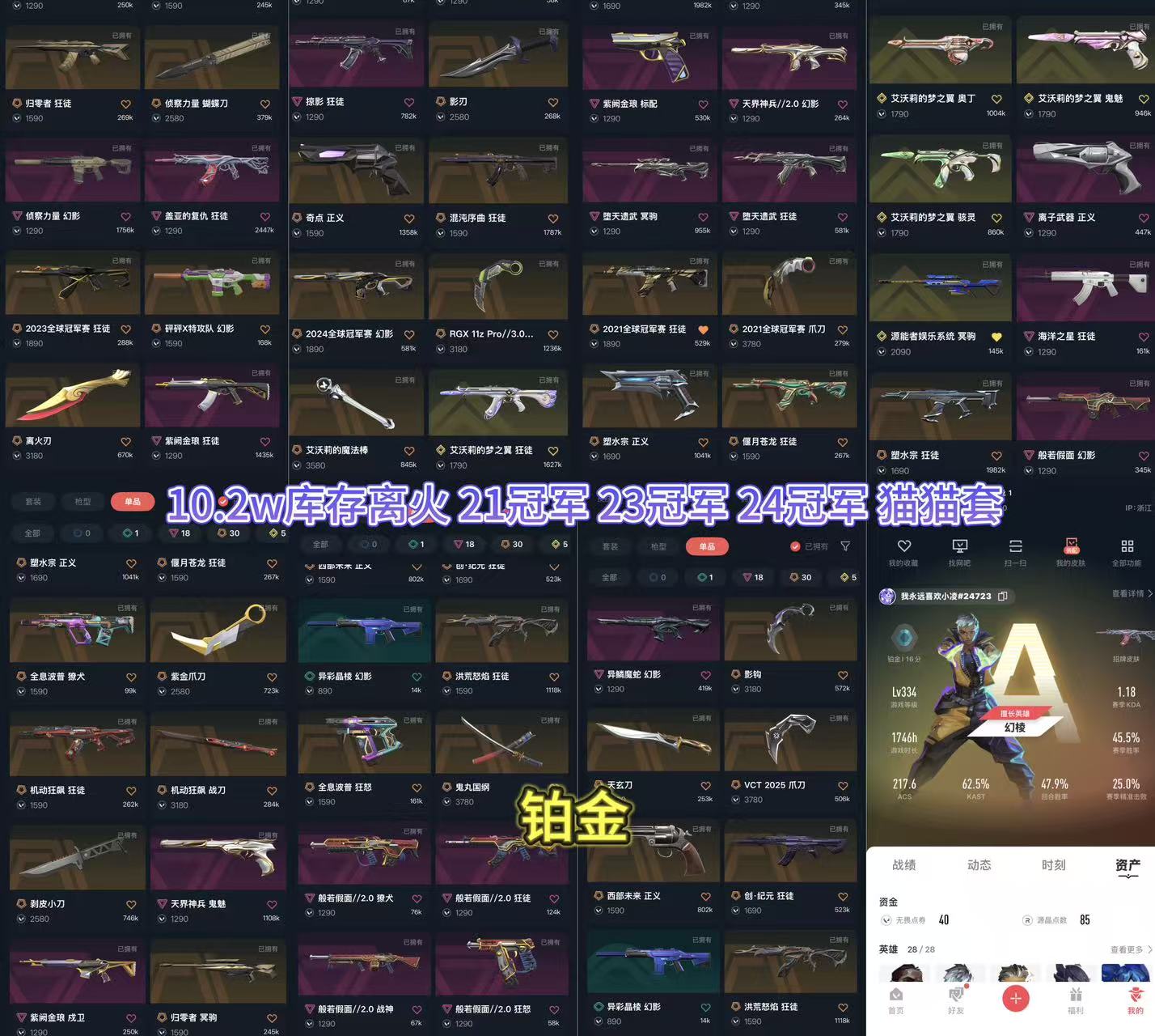 冻结秒解⚡11w库离火21冠军套23冠军24冠军套⚡猫猫套vct爪影钩剥皮太刀般若套塑水洪荒归零