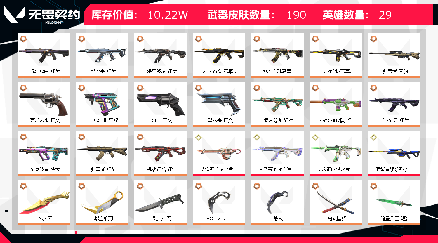 • 皮肤资产价值: 102185