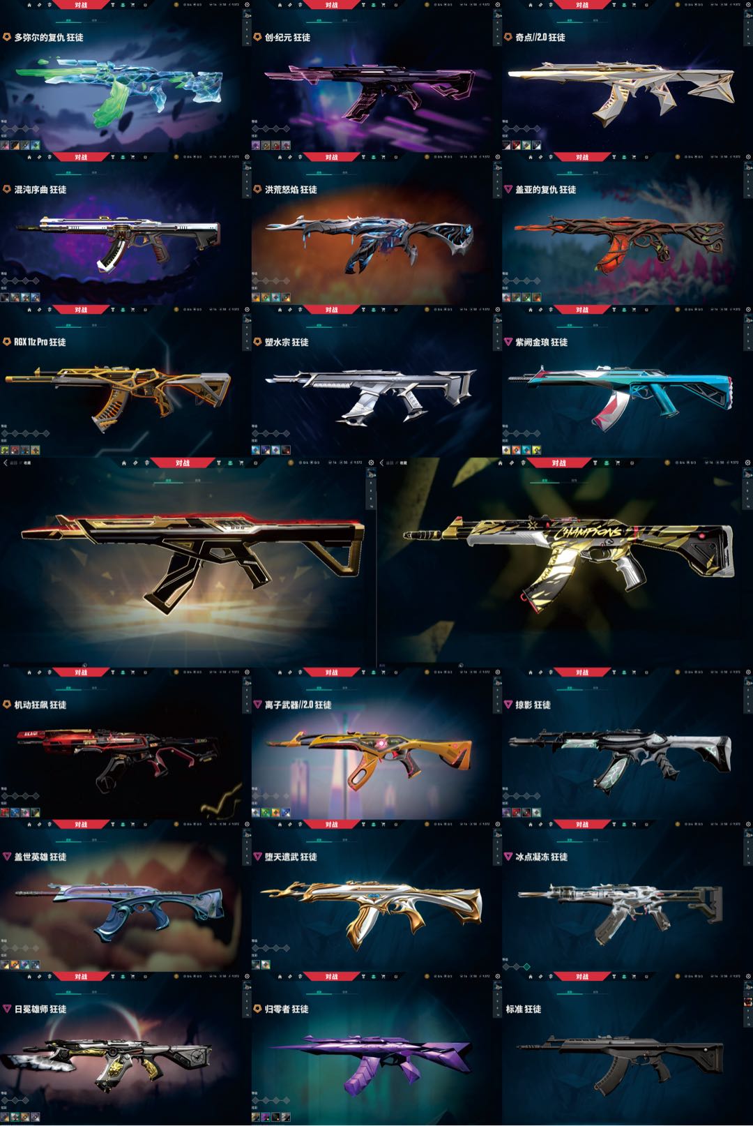 🔥25冠军套+21/24枪皮🔥26把狂徒显卡多米尔创纪元+显卡VCT爪+奇点侦查蝴蝶+极品幻影