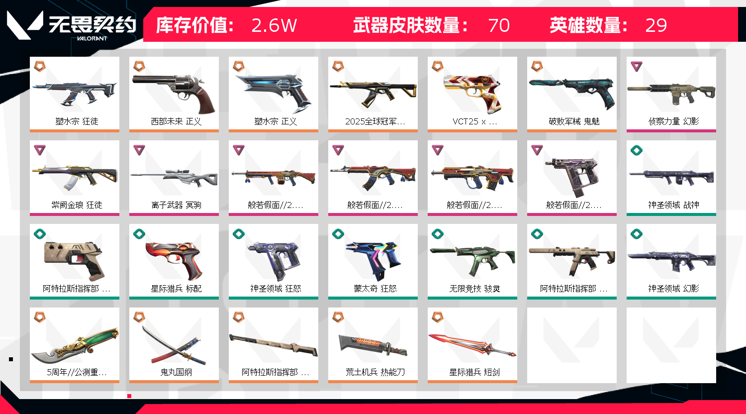 • 皮肤资产价值: 26030