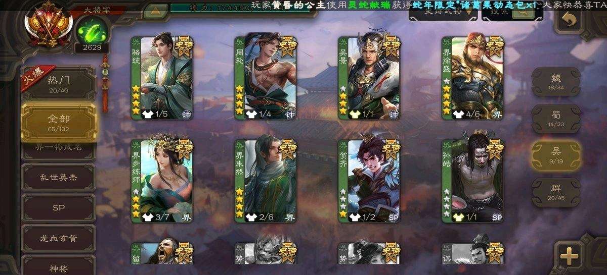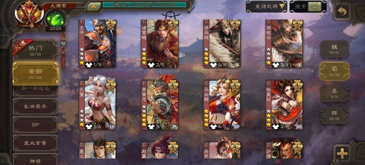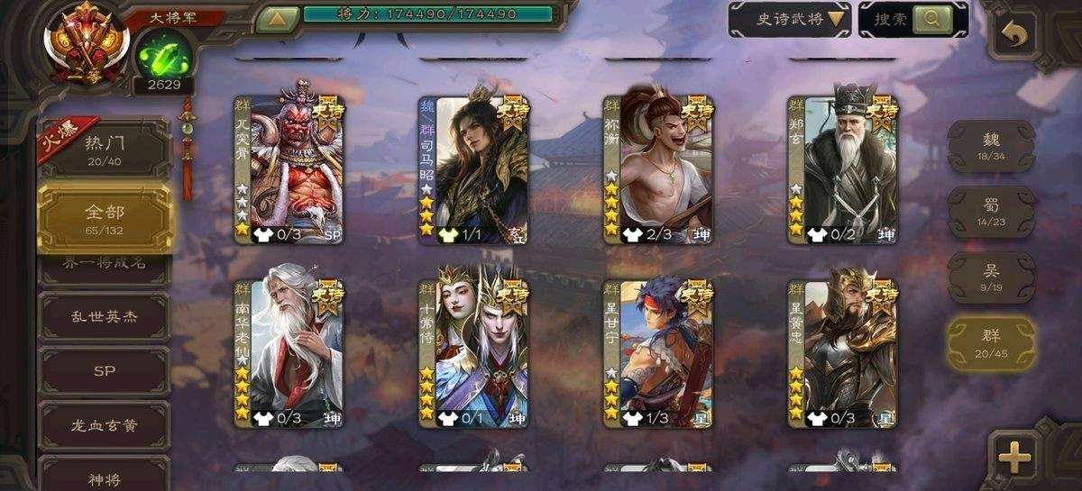 【史诗武将数量]65【所有皮肤数量]503【动态皮肤数量]68✨神荀彧神甘宁司马昭刘焉清河公主杜预谋张角十常侍祢衡