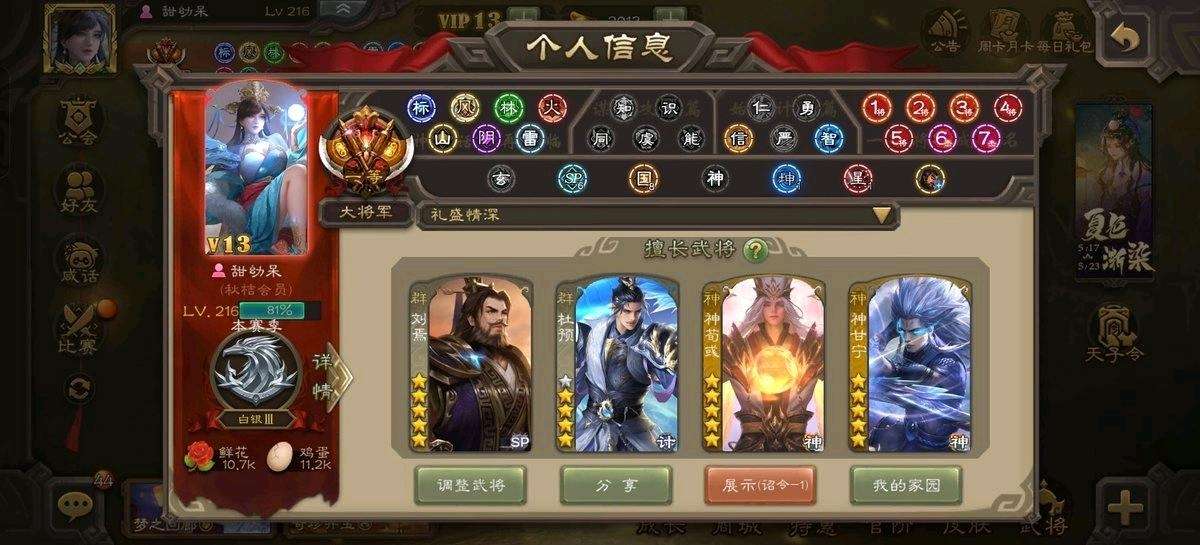 【VIP等级】VIP13[官阶]大将军【游戏等级]216