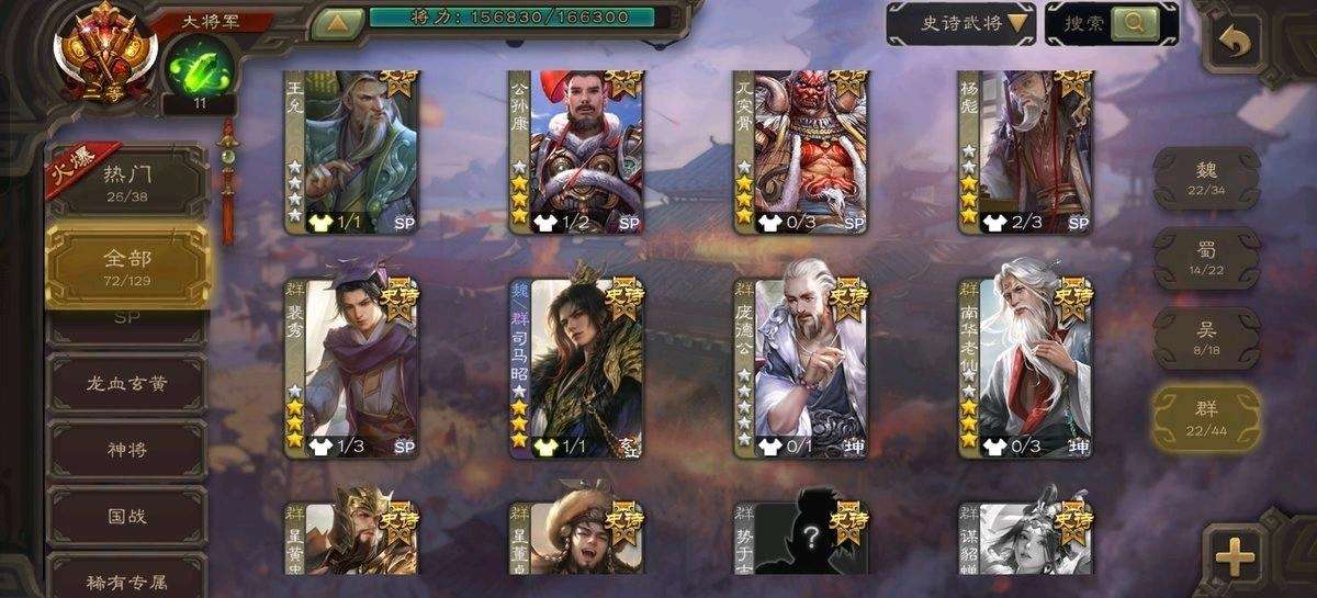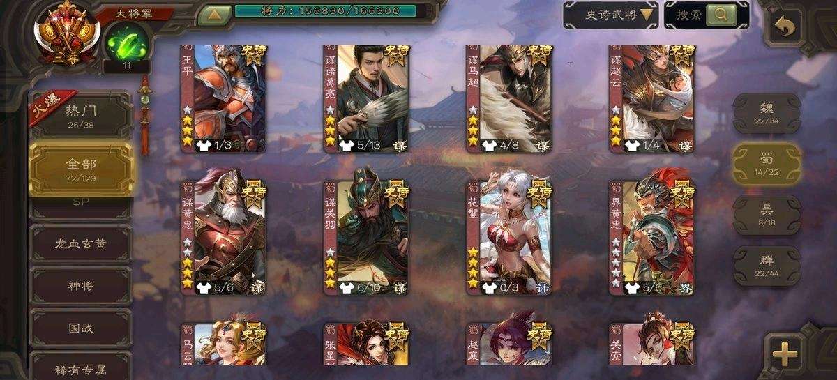 【VIP等级]VIP11[官阶]二等大将军【游戏等级]203【史诗武将数量]72【所有武将数量】444【所有皮肤数量】513【动态皮肤数量】48