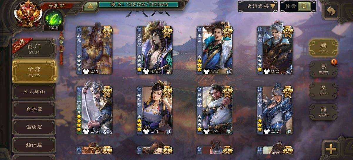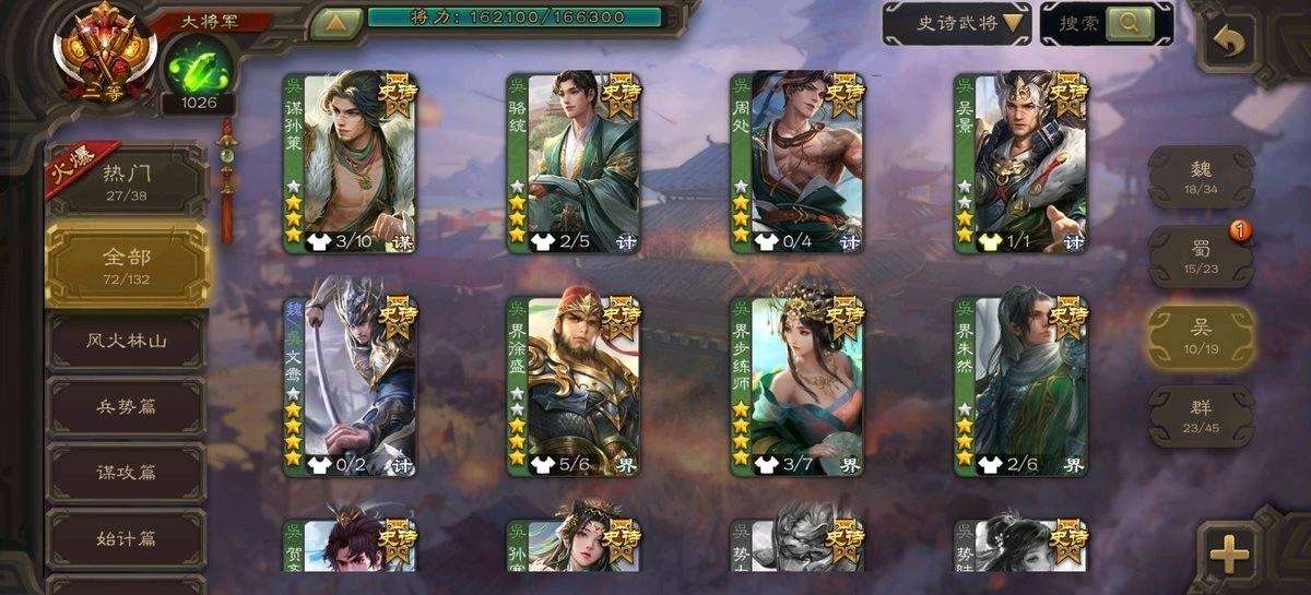 【移动互通版】v15二等大将军✨72史诗61动皮✨动态神荀彧神郭嘉刘焉鲍三娘灵雎谋曹丕谋孙策文鸯孙寒华谋张角界左慈