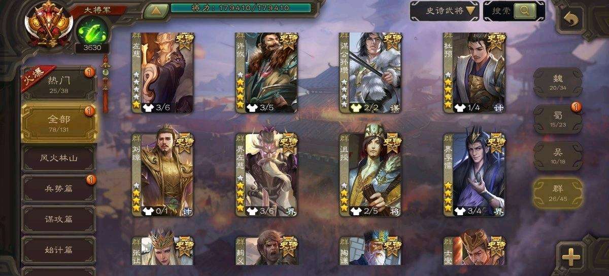【移动互通版】v13一等大将军✨78史诗68动皮✨动态神荀彧神郭嘉刘焉司马昭神甘宁谋黄盖谋公孙瓒审配星董卓庞德公南