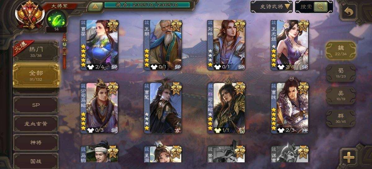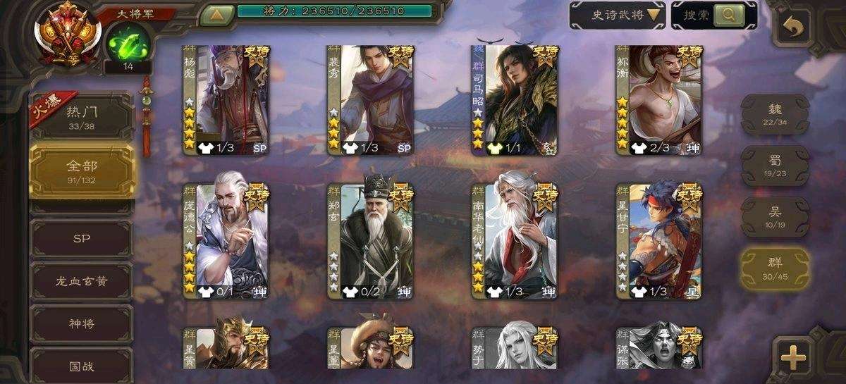 【移动互通版】v20一等大将军⭐92史诗125动皮⭐回廊神荀彧势魏延神郭嘉刘焉鲍三娘神鲁肃神司马懿神孙策神太史慈曹