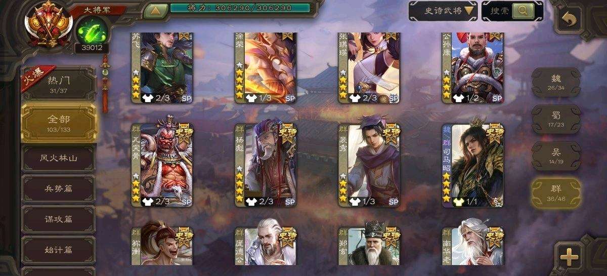 【移动互通版】v24一等大将军104史诗196动皮⭐回廊神荀彧回廊神甘宁神华佗神郭嘉神鲁肃势魏延至臻十常侍回廊杨彪