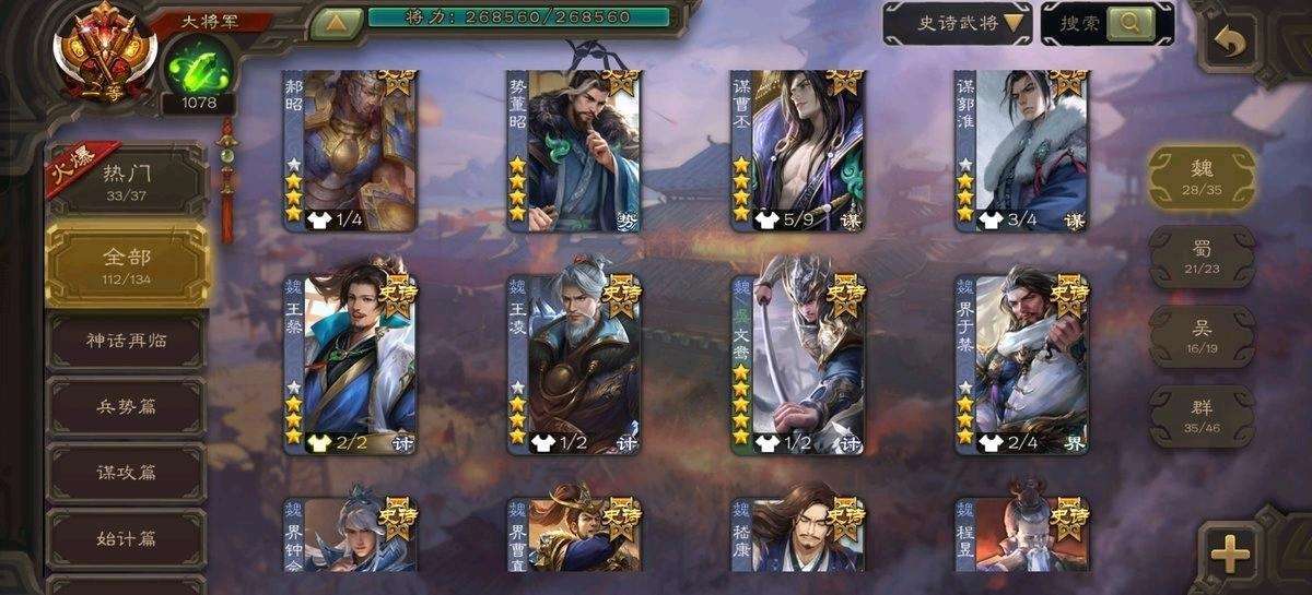 【移动互通版】v18一等大将军112史诗154动皮🍰回廊刘焉至臻十常侍至臻神郭嘉回廊神荀彧回廊神甘宁神鲁肃神华佗