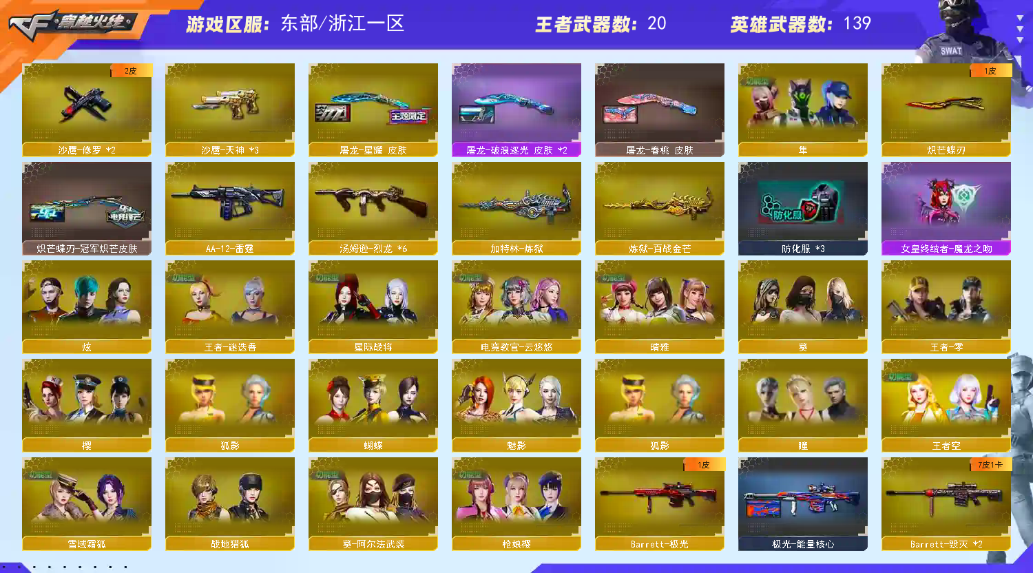 • 游戏区服:穿越火线 / 电信区 / 浙江一区