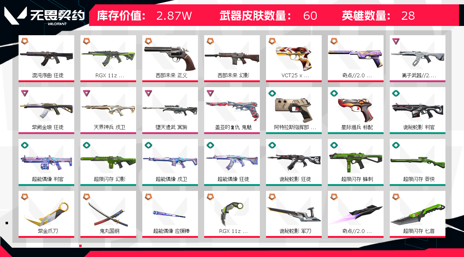 • 皮肤资产价值: 28710