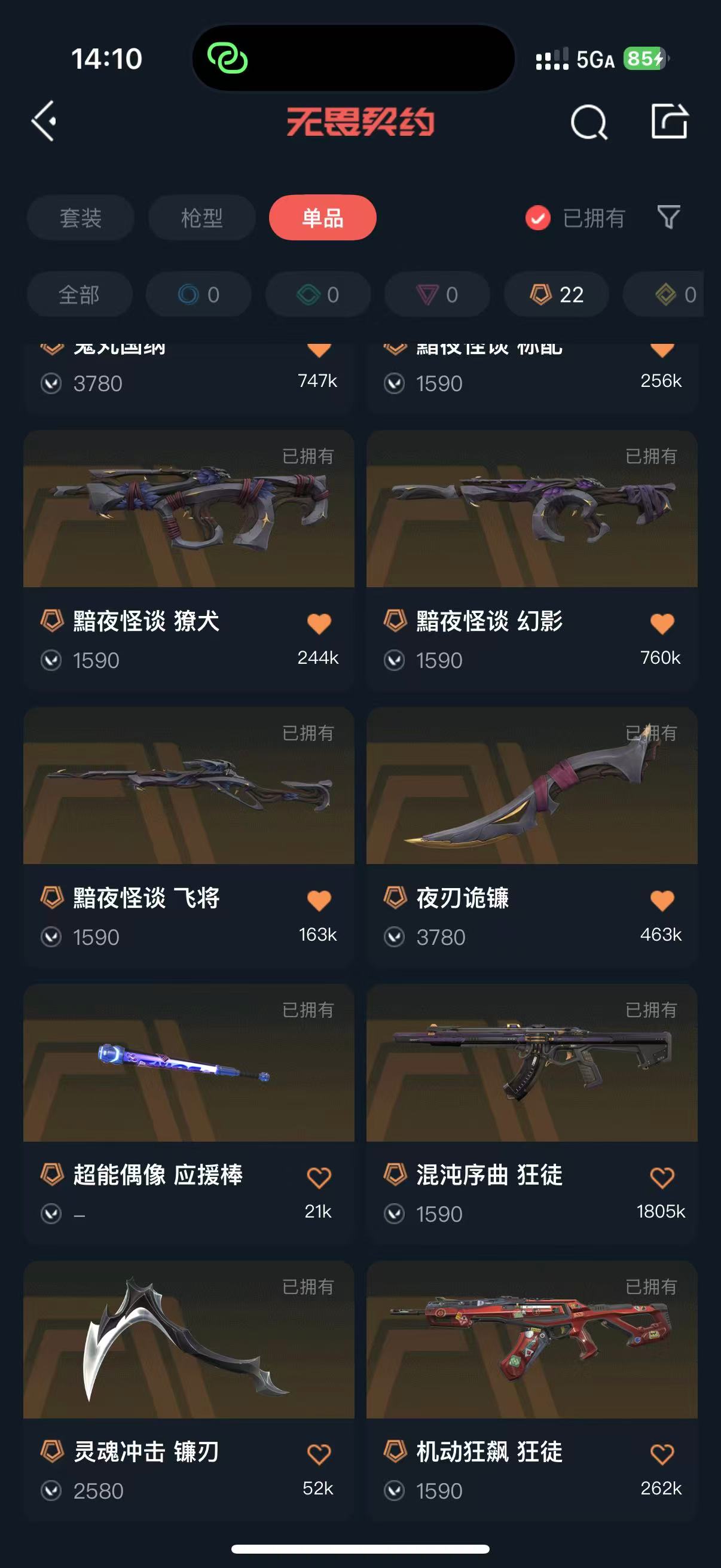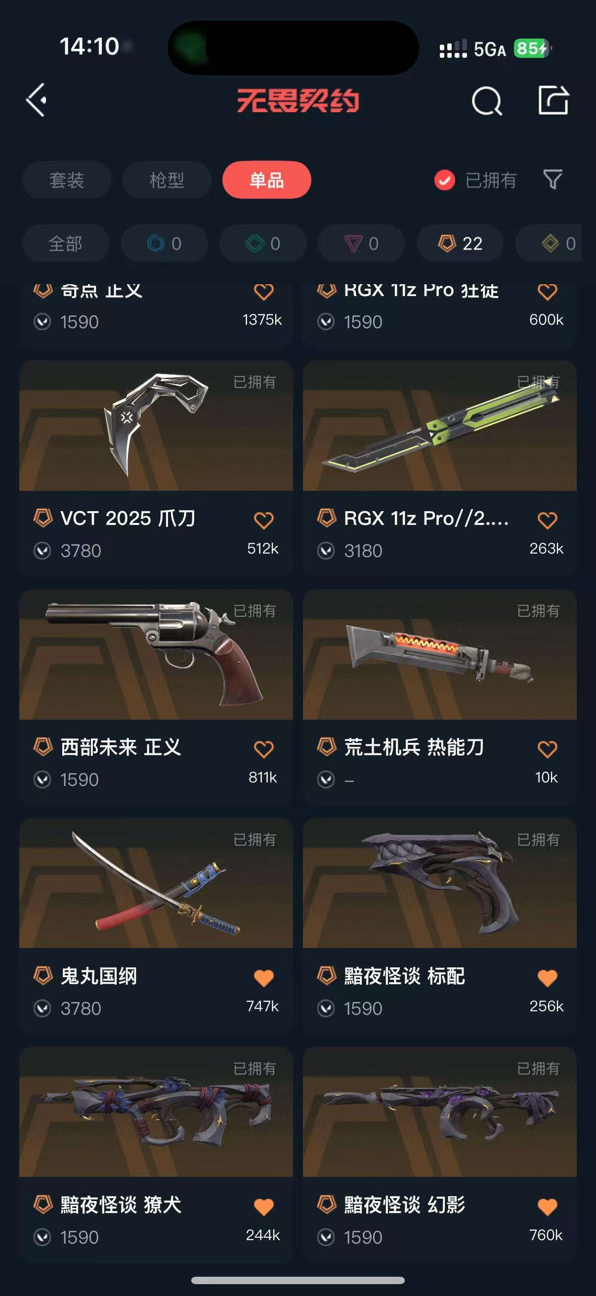 2022/2025全球冠军赛皮肤❤ 侦查幻影❤ 暗夜怪谈 套❤ VCT 2025爪刀❤ 般若假面套❤